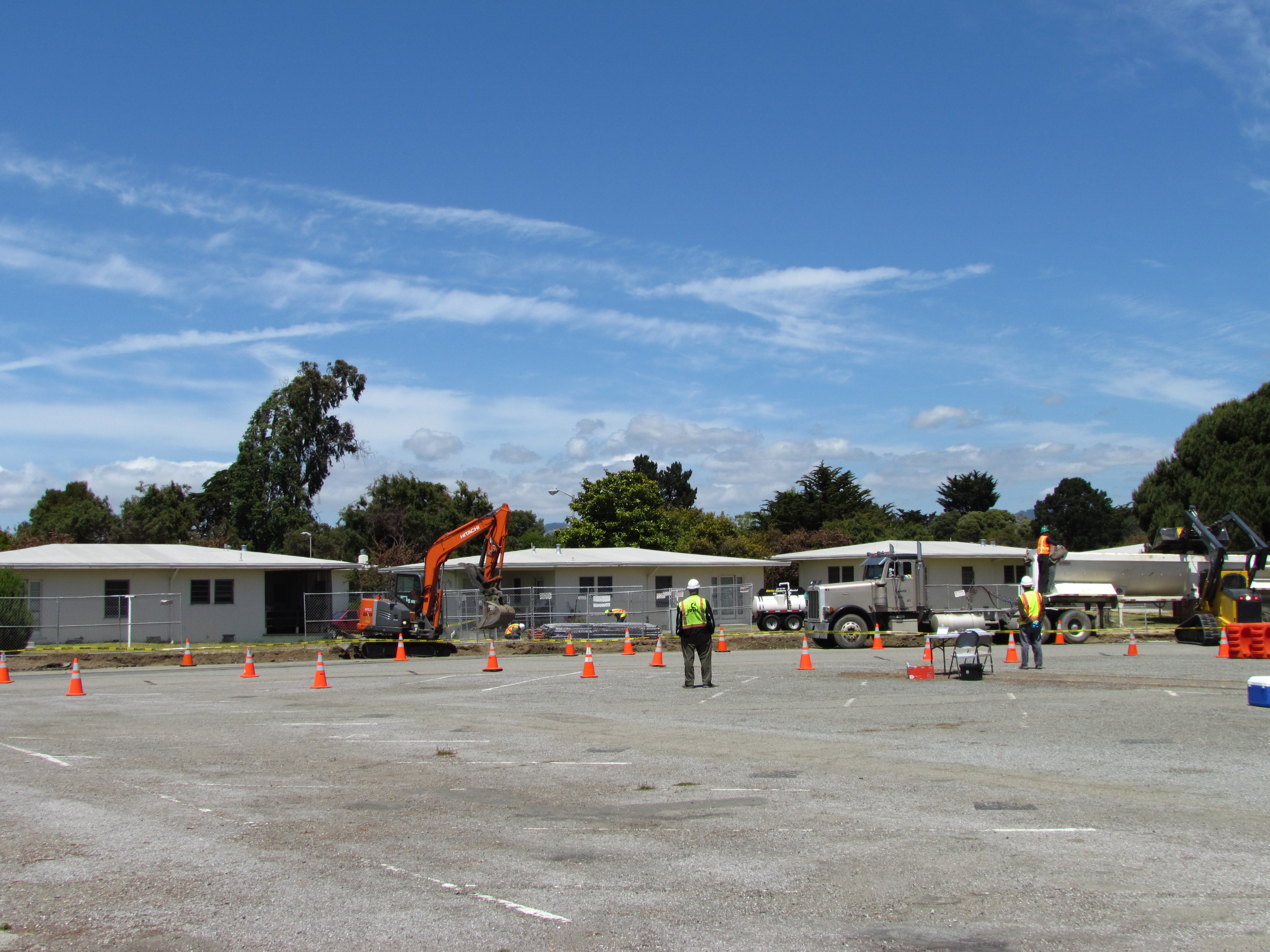 Work has begun next to the Collaborative housing to remove lead contaminated soil. Sidewalk sections have been removed and the area fenced off.