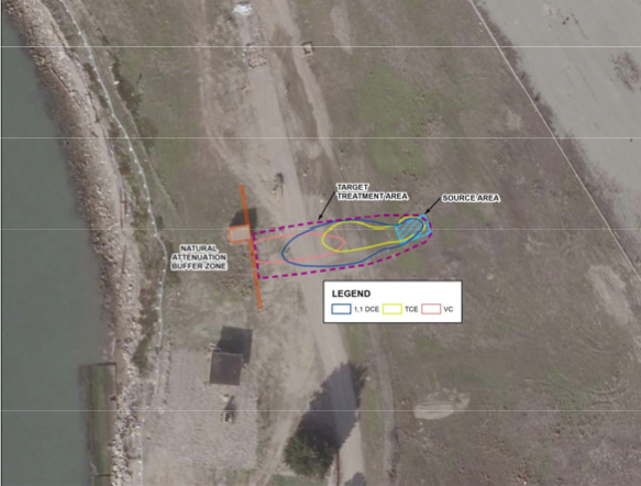 Some current and former members of the Restoration Advisory Board (RAB) have long been concerned as to whether the size of the plume has been adequately characterized, meaning how wide and how deep. The main issue is its proximity to the Bay and whether remediation measures will prevent any of the hazardous compounds from entering Bay water.