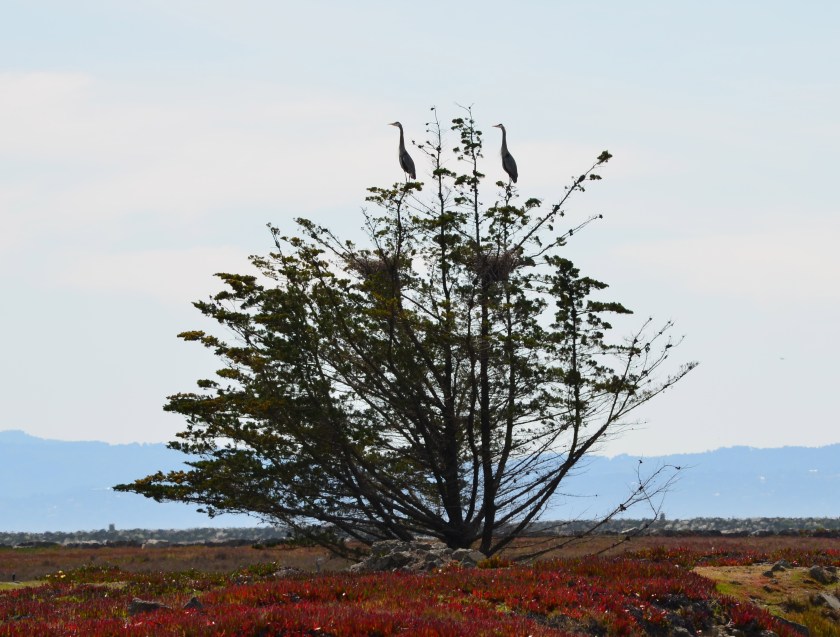 Previous Image Next Image Great Blue Herons in cypress Great Blue Herons above two nests in cypress on Runway Wetland – Alameda Point Nature Reserve.