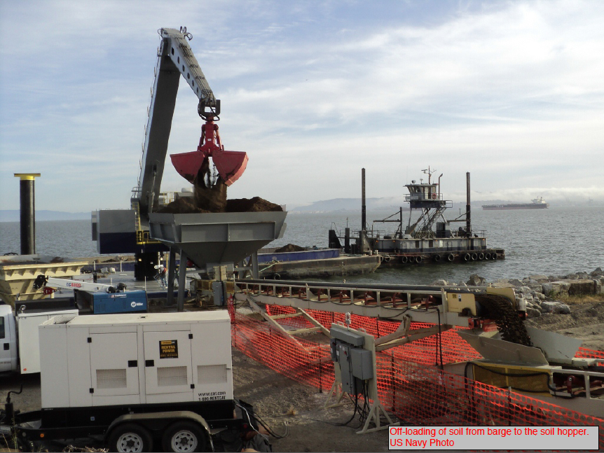Previous Image Next Image Off-loading of soil from barge to the soil hopper. US Navy Photo. Off-loading of soil from barge to the soil hopper. US Navy Photo.