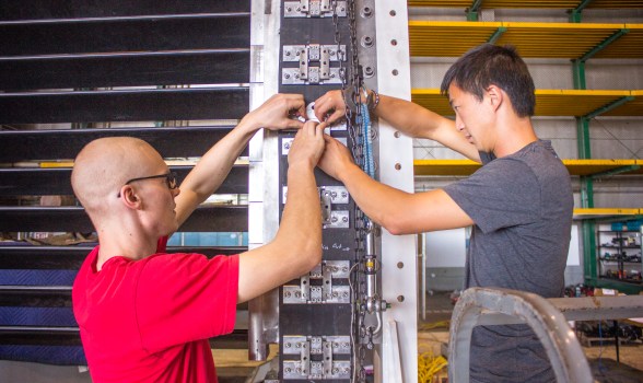 Assembling cassette drive belt. Belt connectors underwent testing and re-working at Alameda Point. Final product surpassed 60 million cycles without failure. Natel Energy photo. Used by permission.