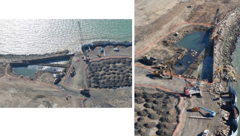 Excavation area where contaminated soil was removed due to proximity to shoreline. Moved to small piles. Navy photos.