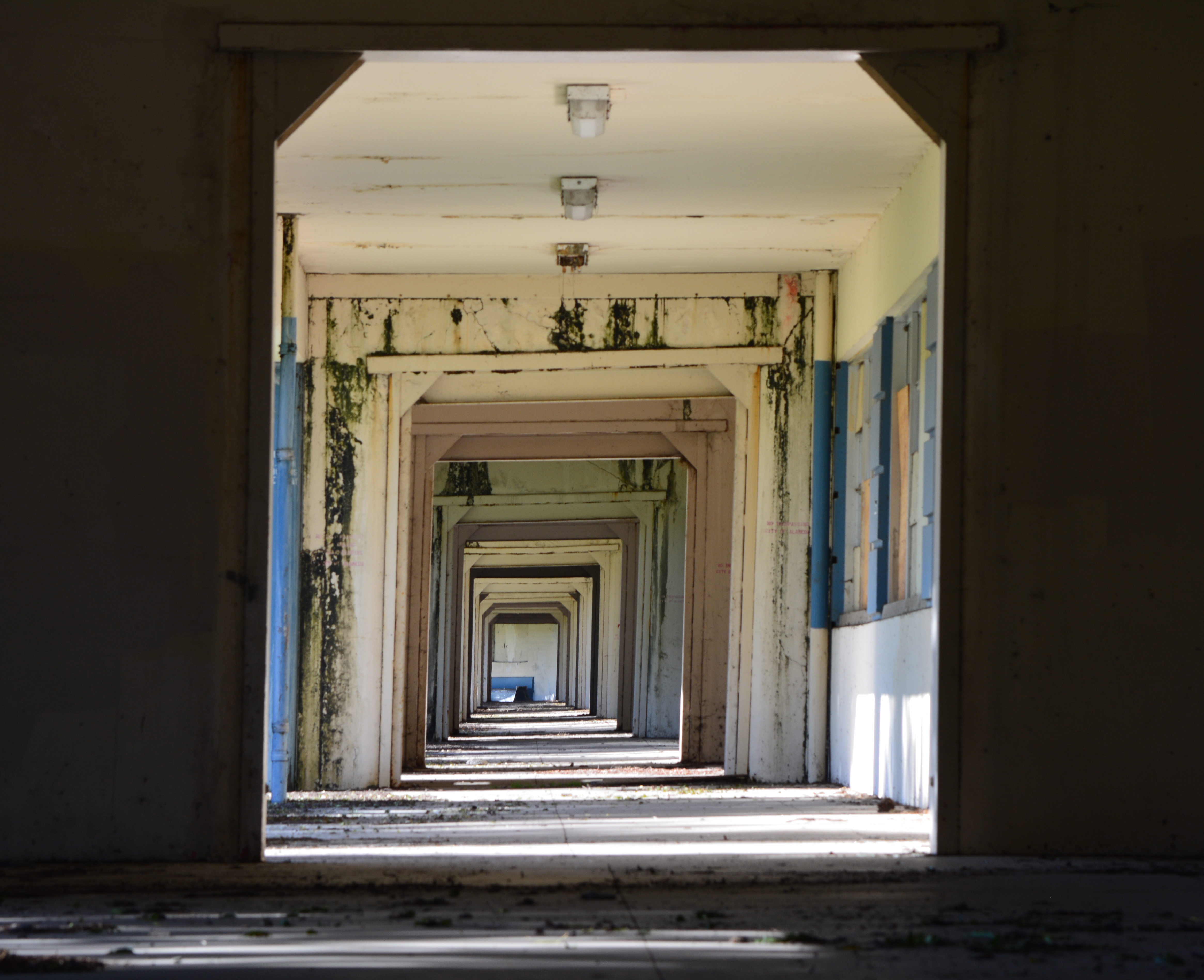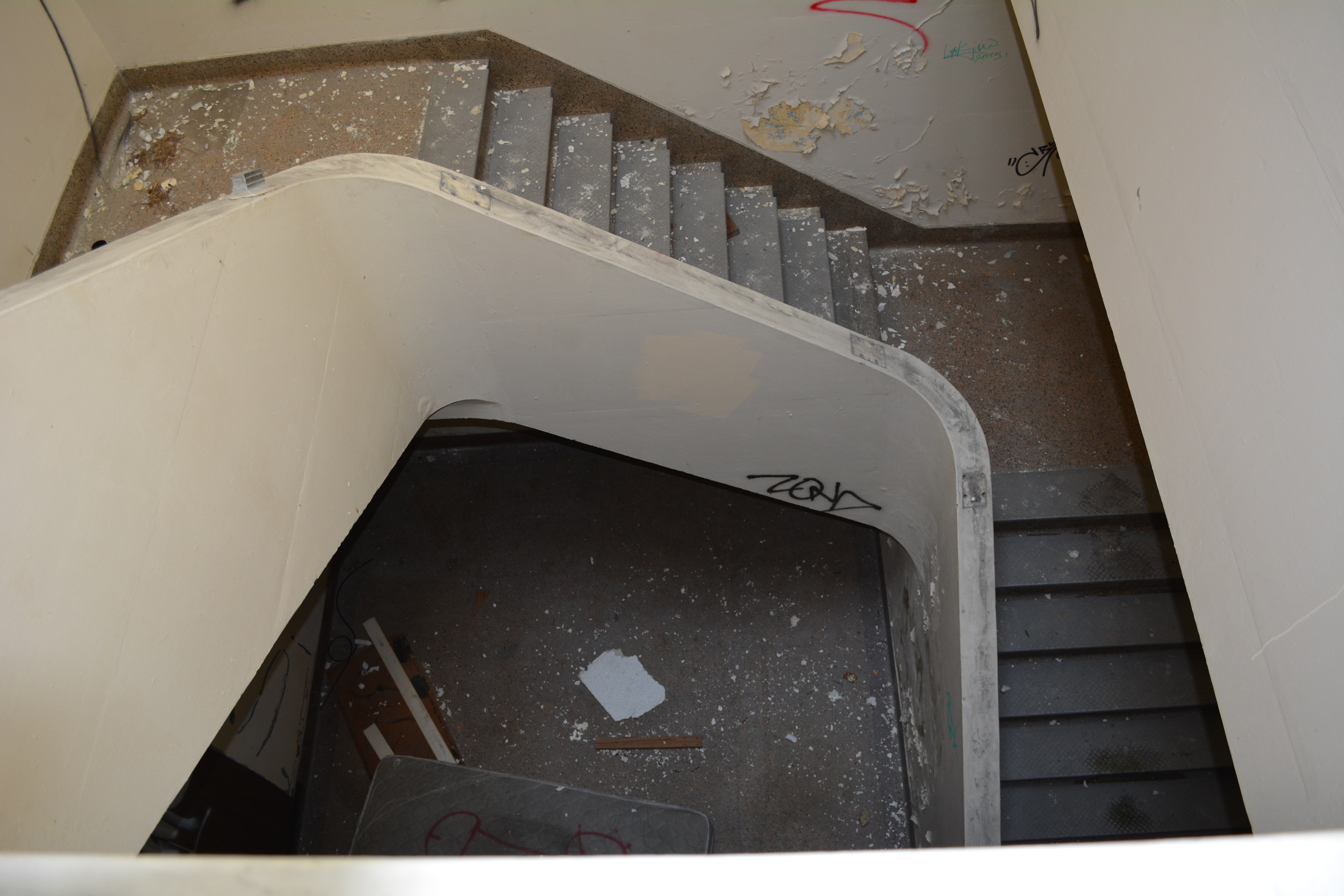 The exteriors of the fortress-like reinforced concrete buildings show few signs of cracking and structural deterioration since 1940. The interiors are a different story.