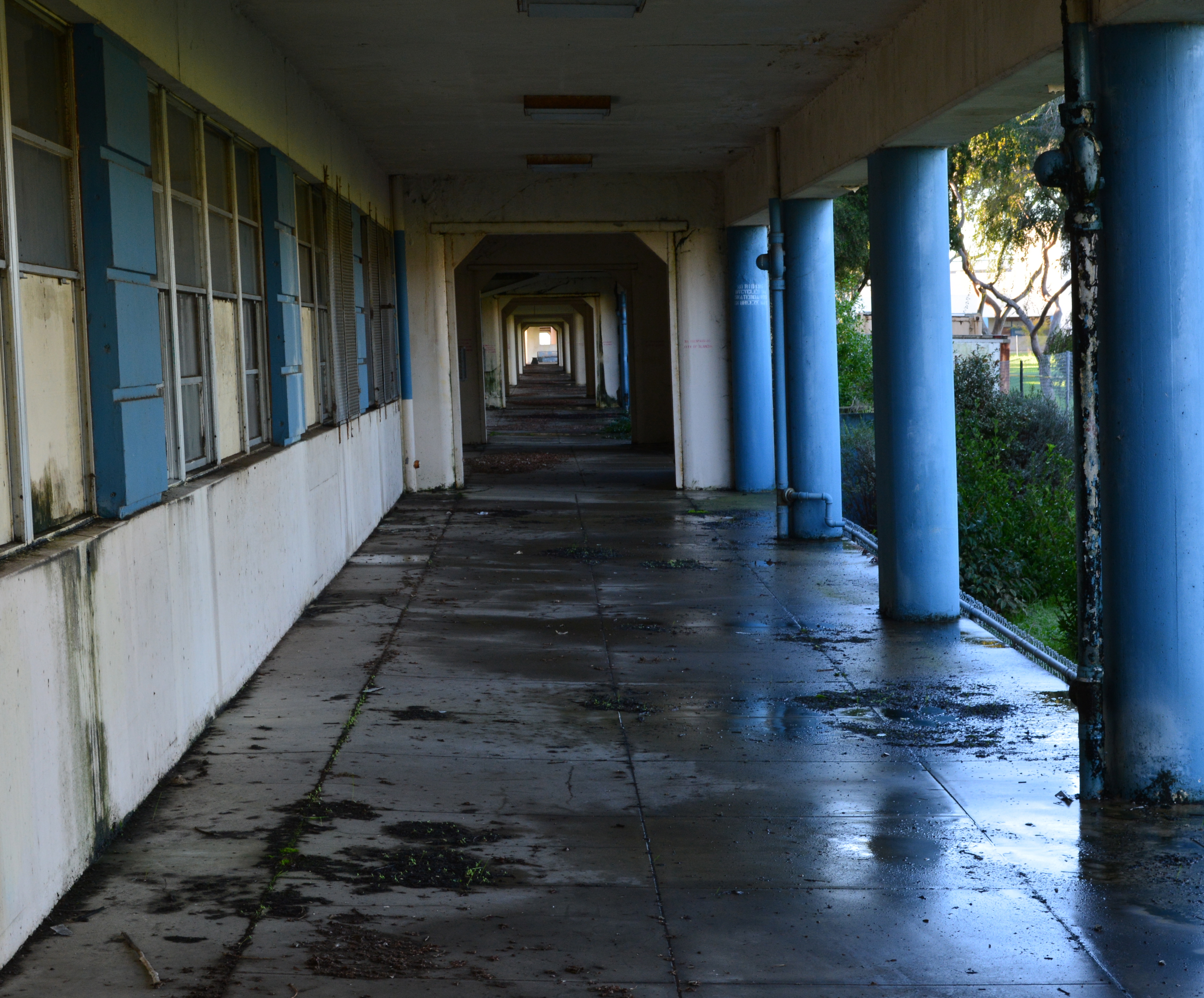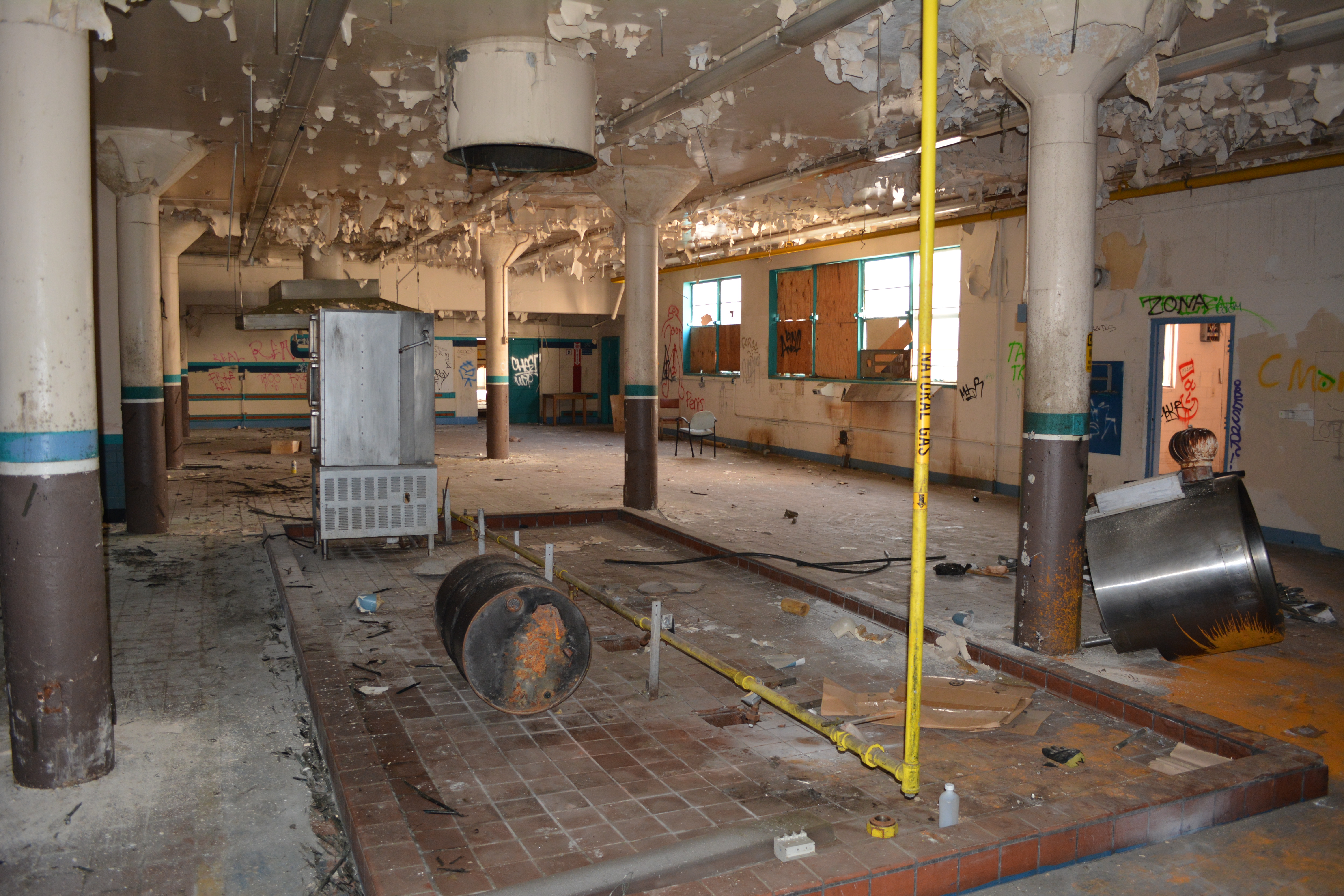 Metal thieves have trashed the insides to remove copper wire. With the copper cache picked clean, thieves have turned to aluminum, removing a 15-foot-long aluminum handrail from a mess hall staircase. Some night visitors just come to party and leave behind their spray-painted artwork on the walls. Peeling layers of paint the size of a hand towel dangle from the ceiling of the mess hall kitchen.