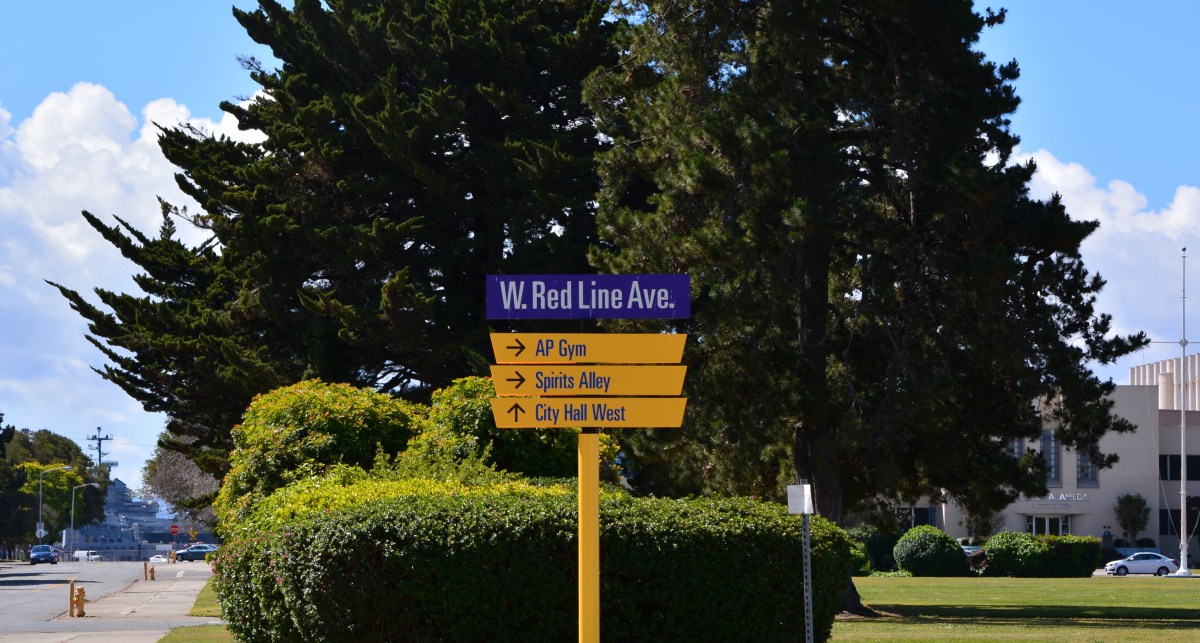 New street signs have been installed at Alameda Point, along with iconic winged emblems painted on the sides of hangars. The purpose of the new signs is for helping visitors find their way around and highlighting attractions and key tenants. The signs also create an enhanced sense of place for current and future tenants.