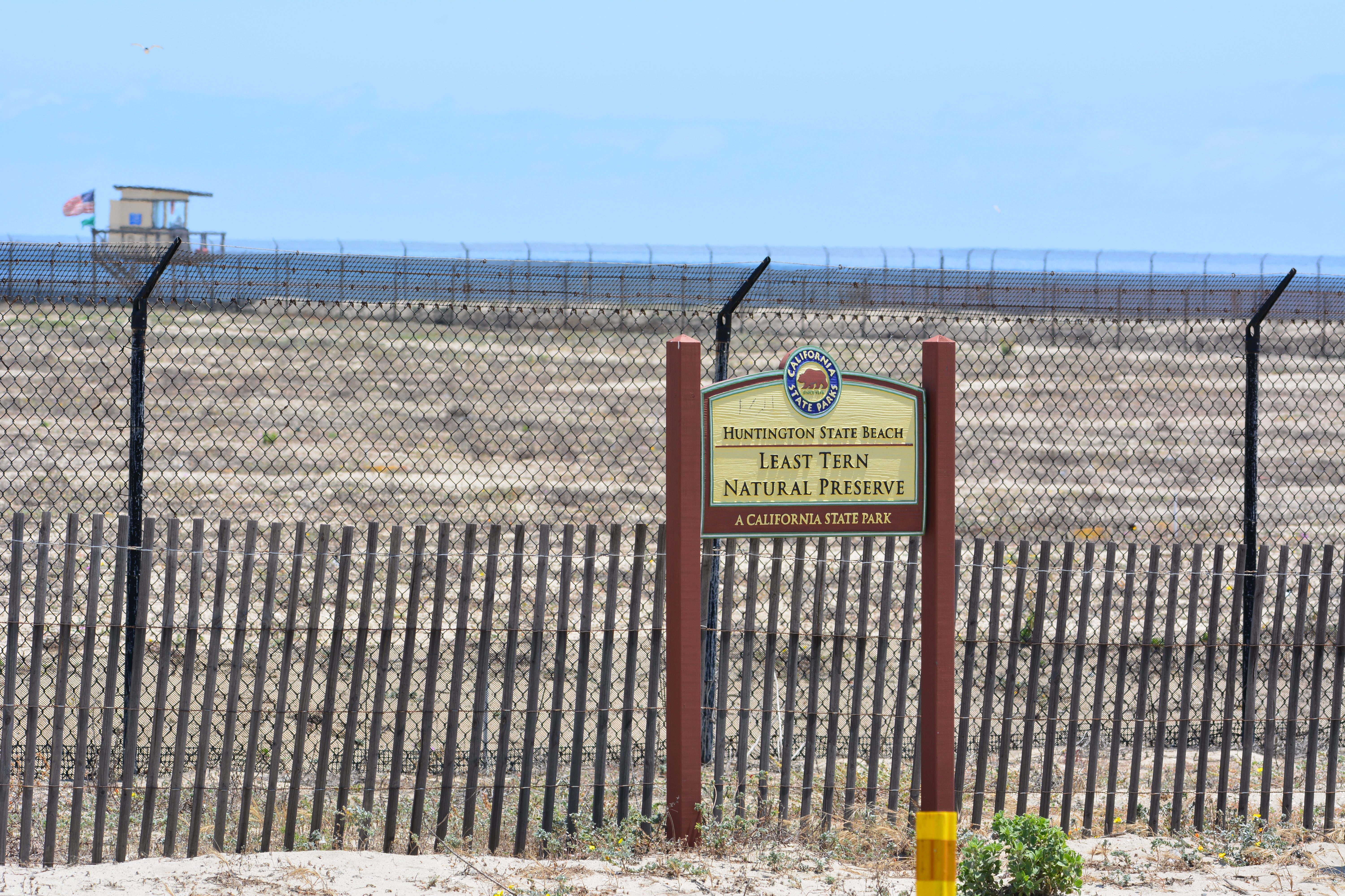The 13-acre Huntington State Beach Least Tern Natural Preserve is protected by a 15-foot buffer zone on three sides. The Huntington Beach Bike Trail hugs the fourth side of the colony, with the busy Pacific Coast Highway only 40 feet away.