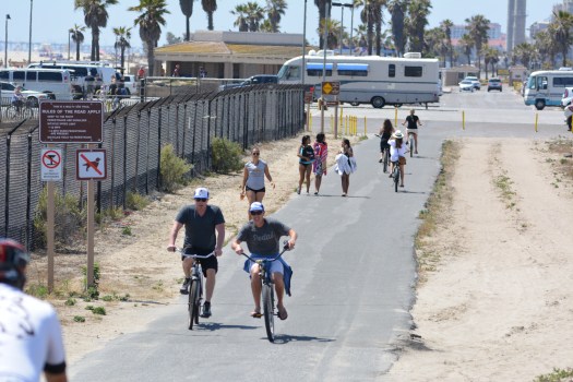 Previous Image Next Image DSC_0485 Cyclists on Huntington Beach Bike Trail on Memorial Day weekend 2015.