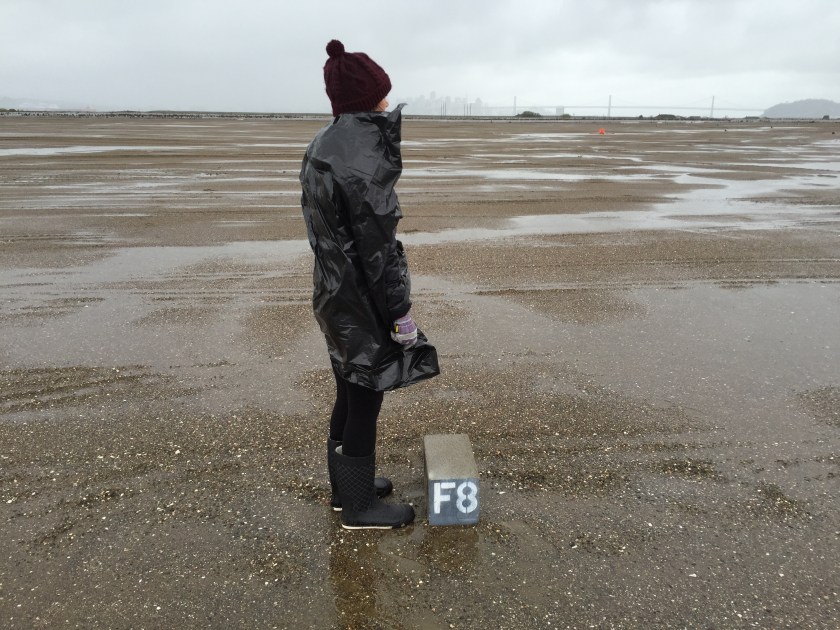 Previous Image Next Image St. George Spirits volunteer with grid marker St. George Spirits volunteer with makeshift rain poncho next to grid marker.