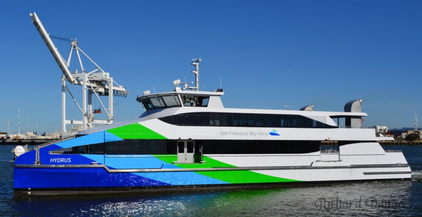 The Hydrus is one of two ferries exactly alike that were ordered by the Water Emergency Transportation Authority (WETA) at a cost of $15 million each. The second ferry will be arriving in July. An additional five ferries will be delivered by the end of 2019, two of which will be like the Hydrus, and the other three even larger with an even more efficient propulsion system.