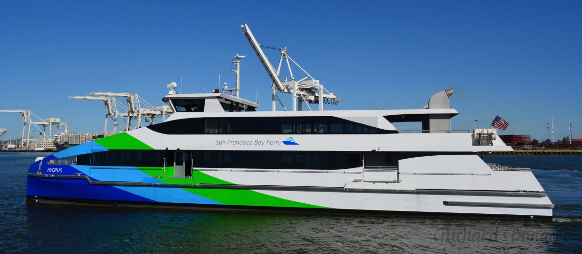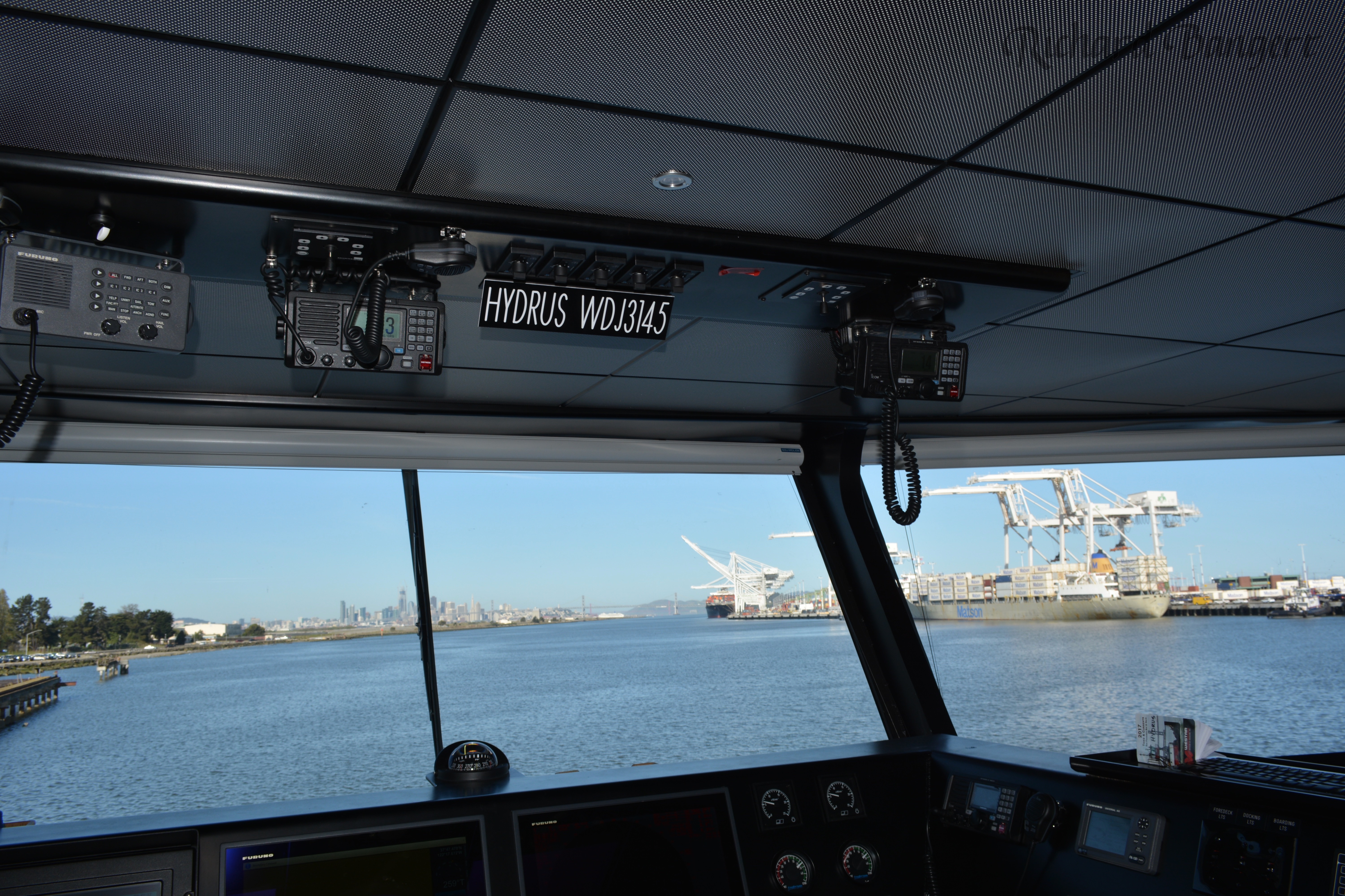 The Hydrus is one of two ferries exactly alike that were ordered by the Water Emergency Transportation Authority (WETA) at a cost of $15 million each. The second ferry will be arriving in July. An additional five ferries will be delivered by the end of 2019, two of which will be like the Hydrus, and the other three even larger with an even more efficient propulsion system.