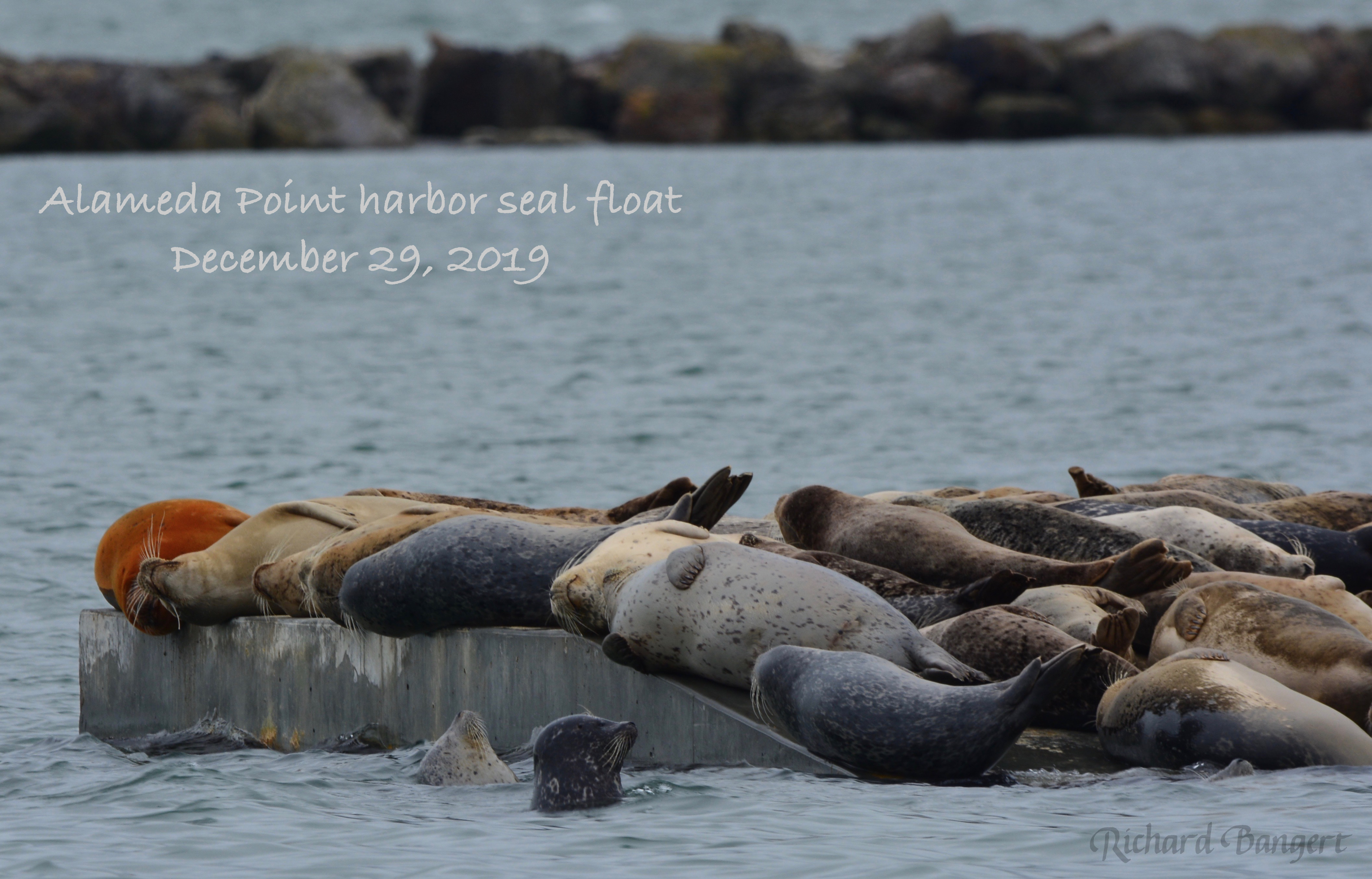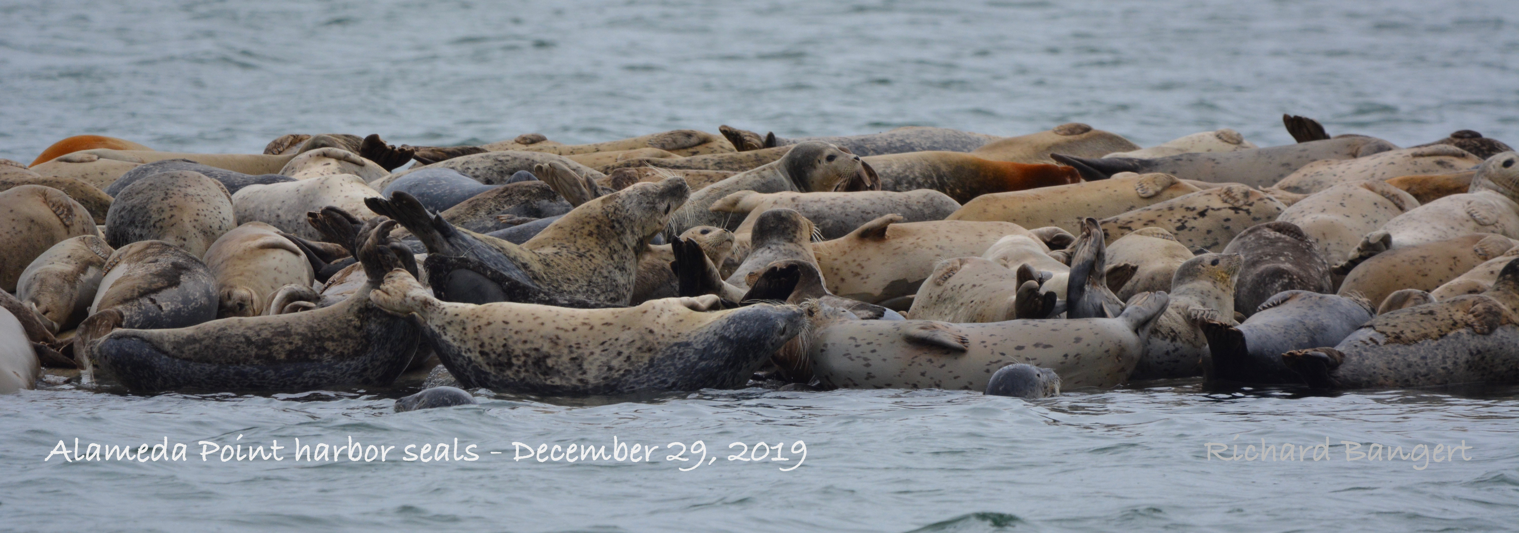 On December 23, there were so many seals looking for a place to get out of the water and warm up at Alameda Point that 53 had to climb onto the rock wall known as Breakwater Island, another record.