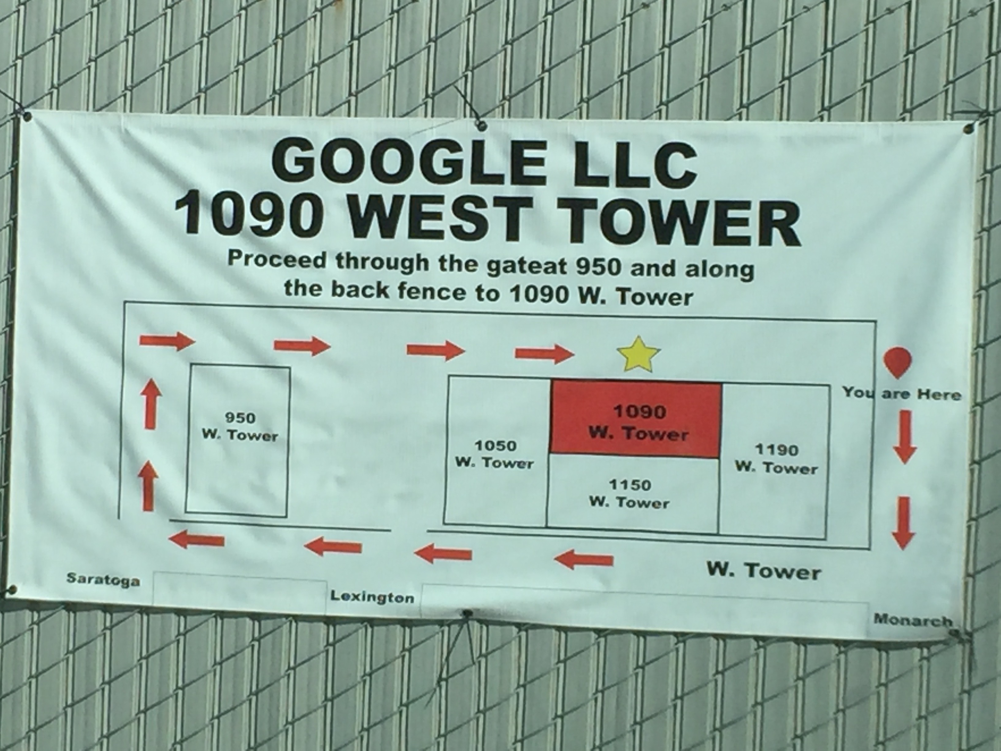 Based on a sign at the former Monarch Street entrance to Makani, Google is apparently still searching for a way to make money at the hangar. The sign directs visitors to another part of the hangar.
