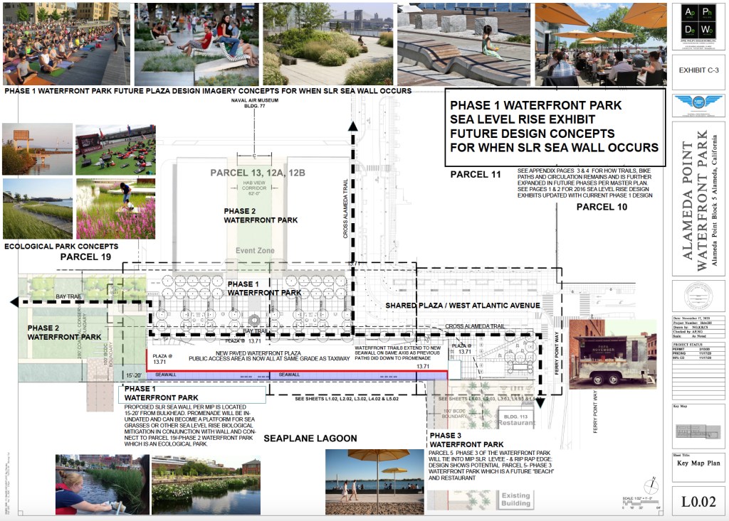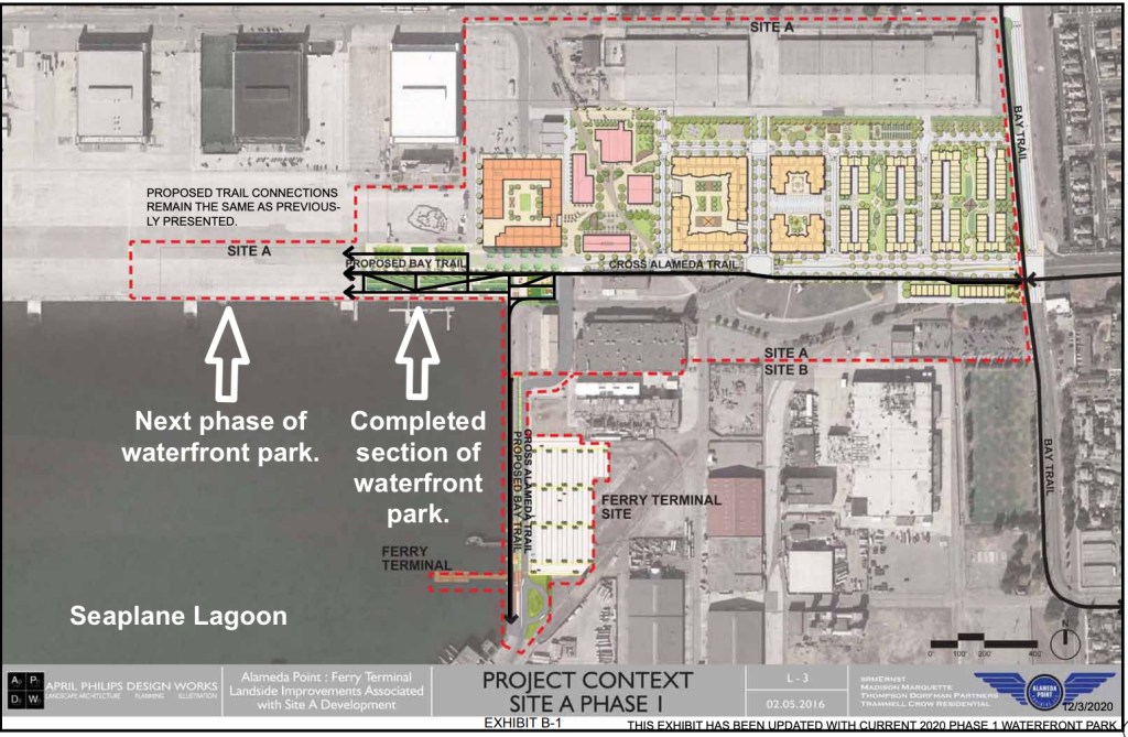 The park, which serves as a levee, was built by Alameda Point Partners, the developer of the nearby mixed-use area known as Site A.