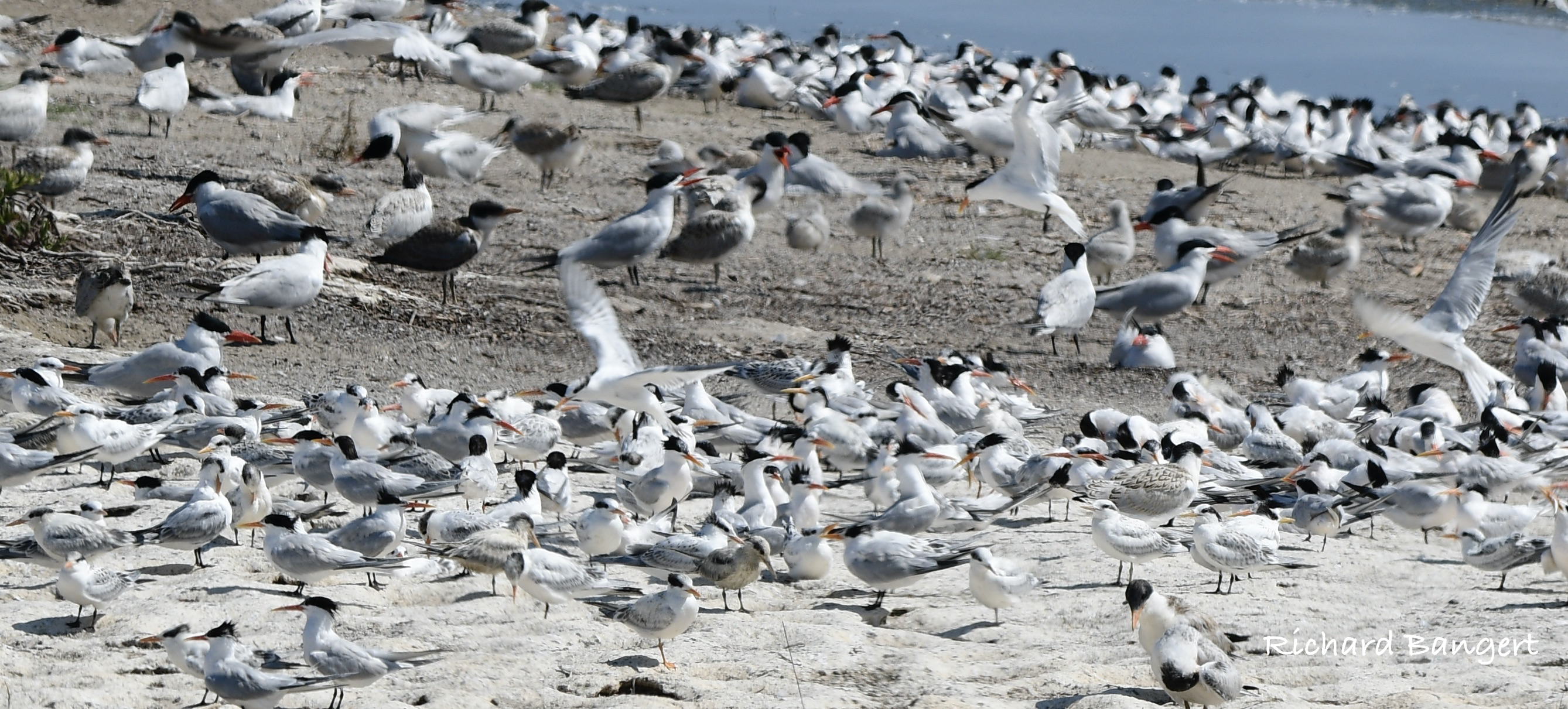 Surprisingly, two other tern species have recently begun nesting in the vicinity. Elegant and Caspian Terns seem to be thriving there, while the endangered Least Terns are struggling.