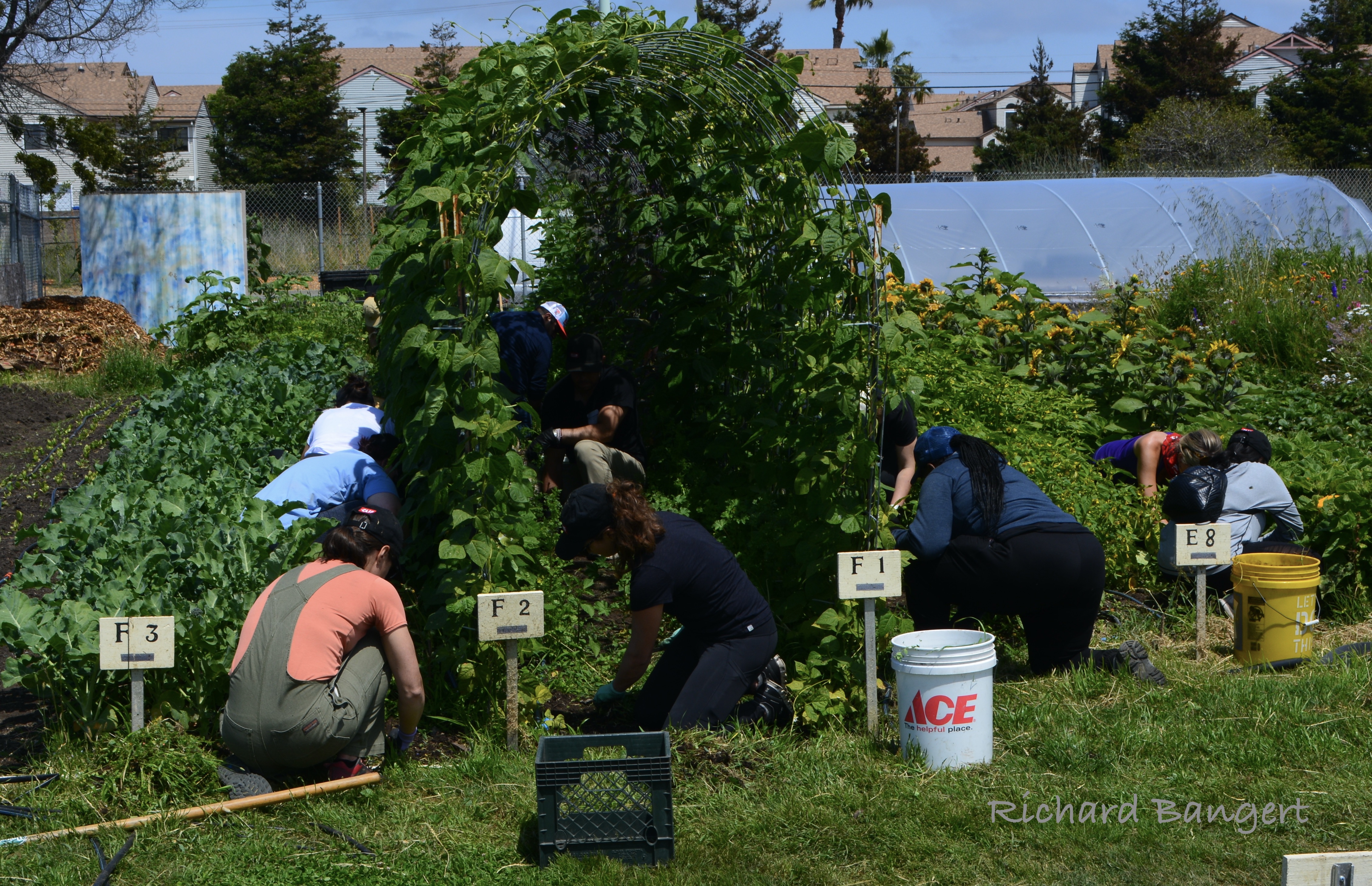 On June 27, two tour buses pulled up at the Alameda Point Collaborative’s Farm2Market urban farm. Roughly 100 employees of Clif Bar & Company, maker of plant-based energy bars, disembarked for a day of community service on company time. Another 65 workers disembarked at other Alameda Point Collaborative (APC) locations. In an effort to keep the farm successful, the workers fanned out in teams to prune fruit trees, pull weeds in vegetable rows, construct rinsing tables for fruits and vegetables, and assemble and stain picnic tables and benches.