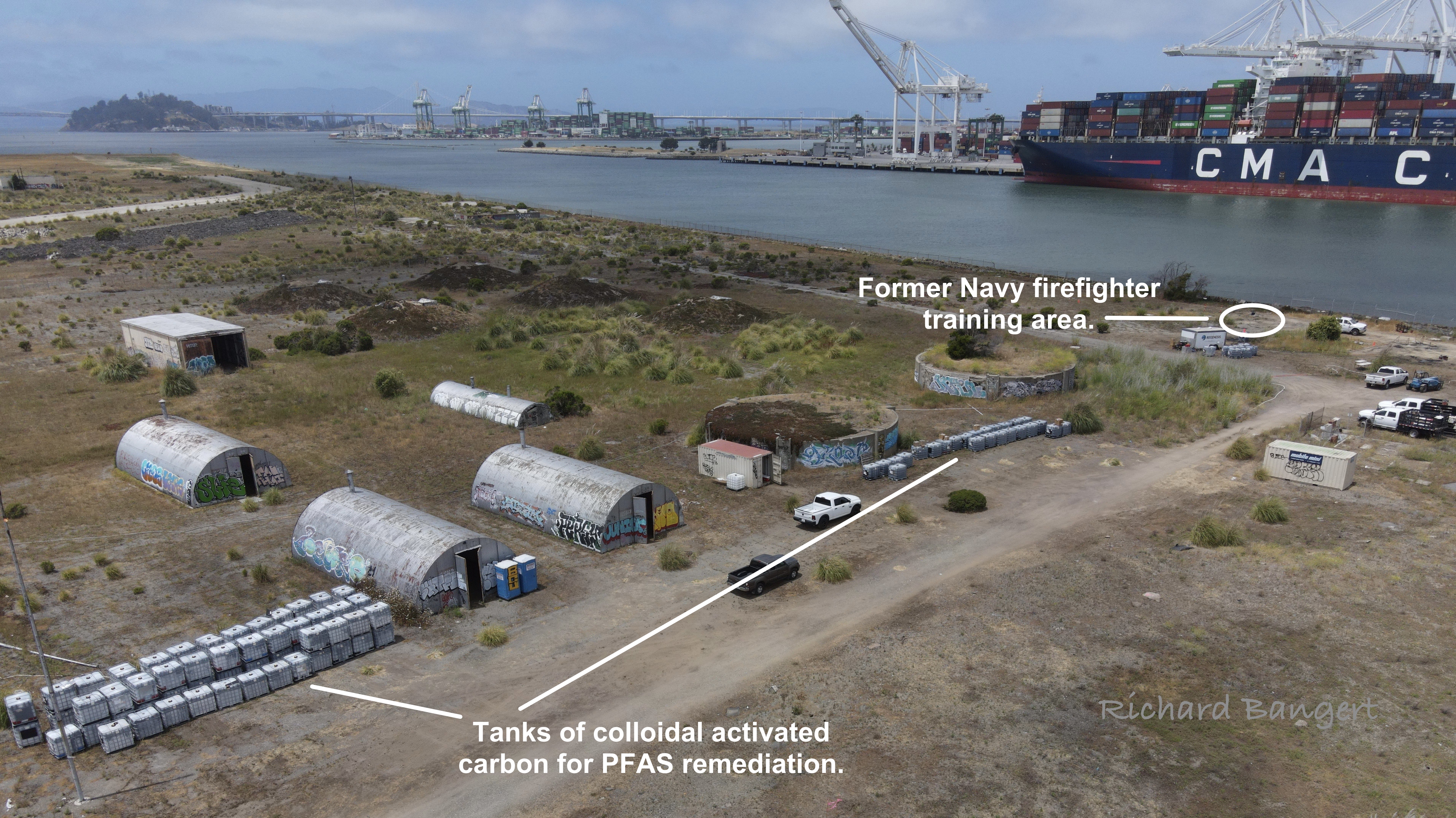 In late June, a Navy contractor began the month-long process of injecting over 180,000 gallons of activated carbon solution into the ground at Alameda Point to prevent a hazardous substance called PFAS (Perfluoroalkyl and Polyfluoroalkyl Substances) from entering the Oakland Estuary.