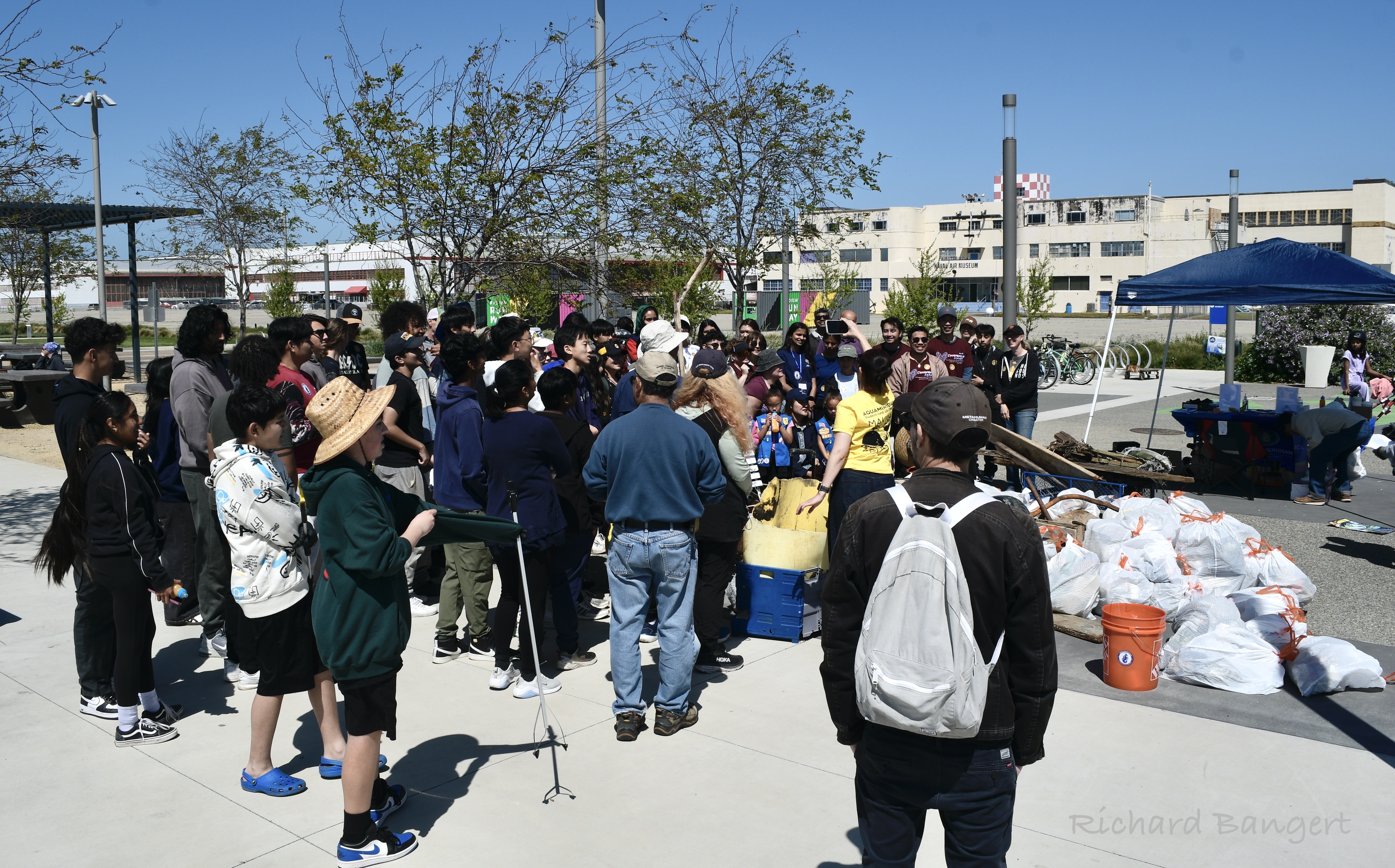 Picking up litter year-round, not just on Earth Day, is an ongoing effort for some. On Saturday, April 12, dozens of students showed up at Seaplane Promenade Park at Alameda Point to pick up litter and trash from around the lagoon.