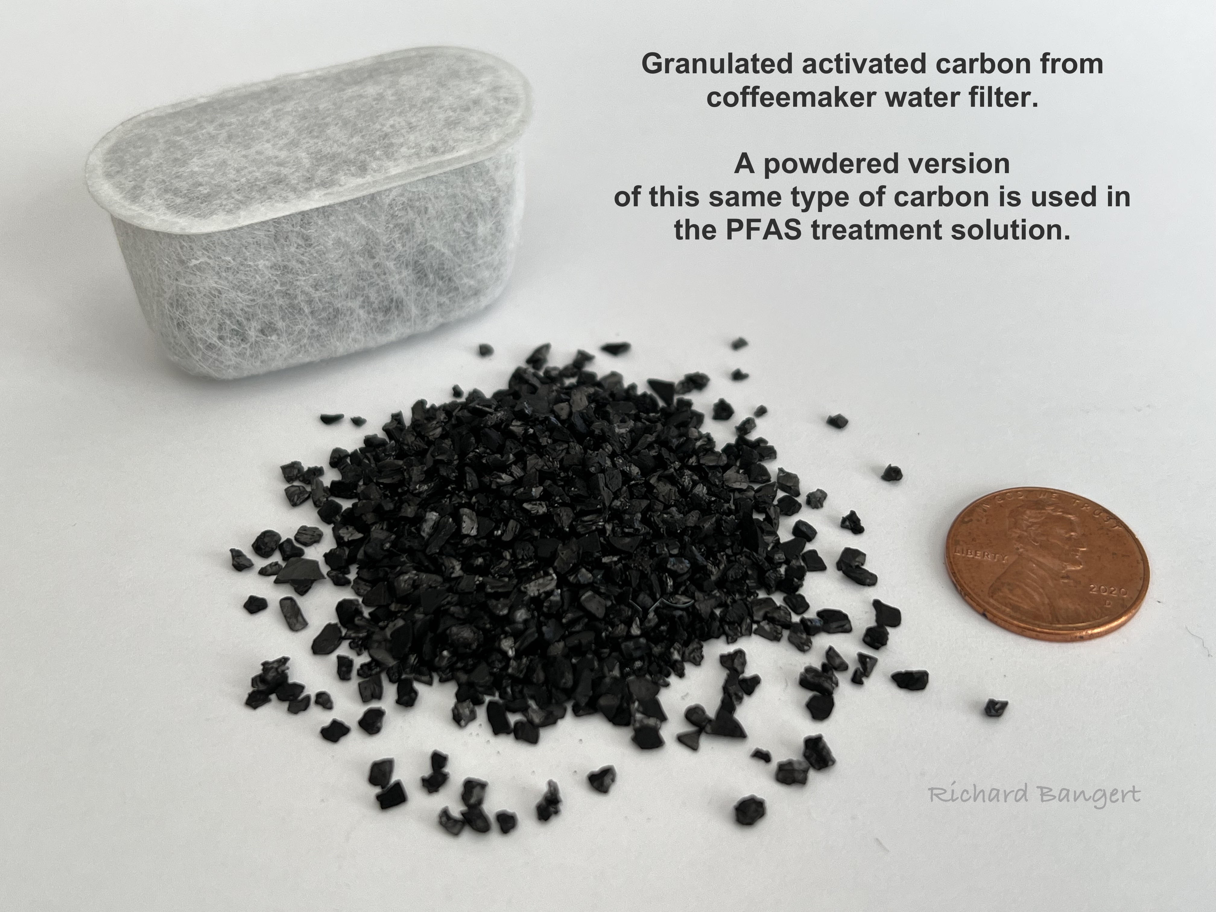 The process of trapping the PFAS in a carbon matrix is called adsorption, which means it is locked together like Velcro® and won’t come loose. It sounds like a similar process called absorption, which is what a cleaning sponge will do. But dirt absorbed into a sponge can be rinsed out.