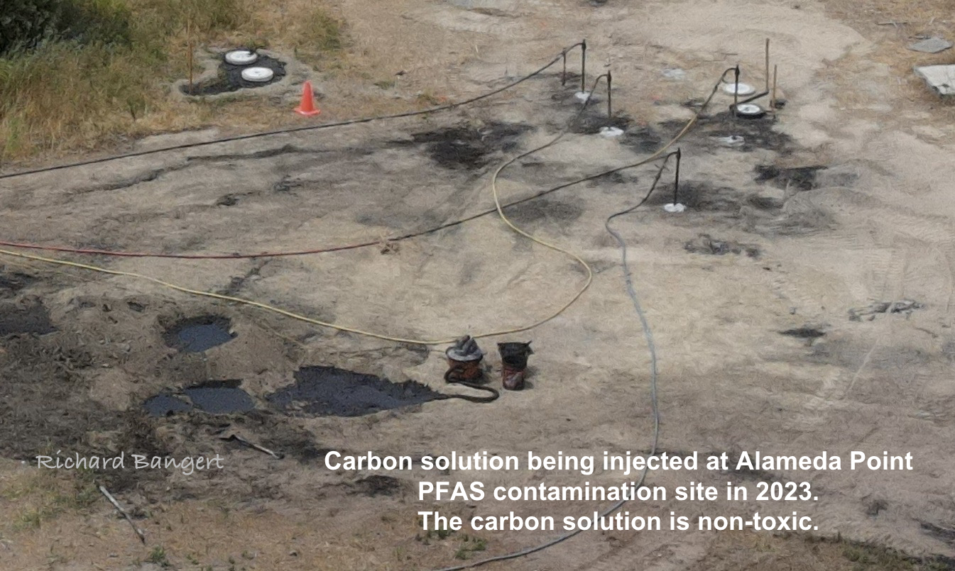 On July 23, 2025, the Navy released the results of its pilot study to determine if injecting a specialized carbon solution into the ground would block hazardous PFAS chemicals from migrating into the Oakland Estuary from Alameda Point.