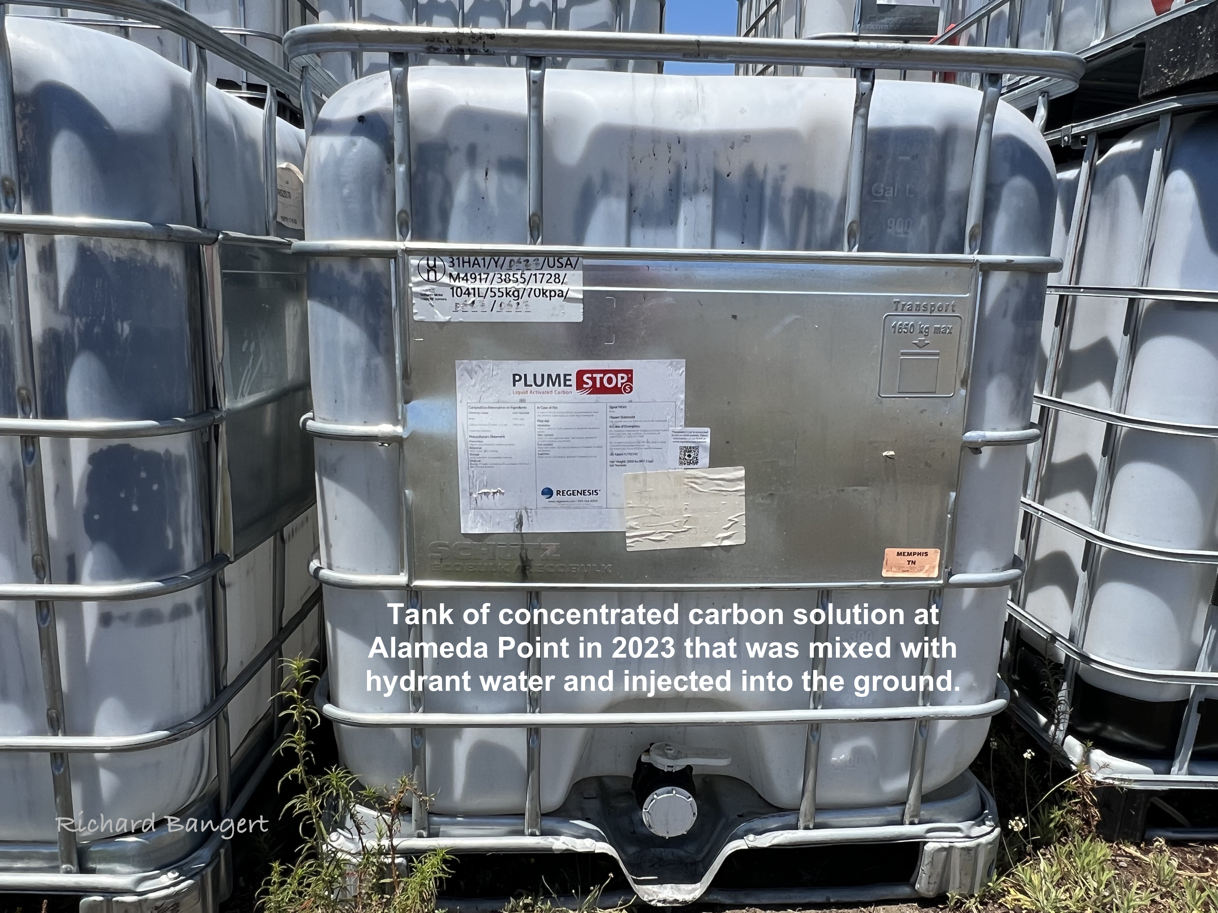 In 2023 during the pilot study, some 19,000 gallons of the Regenesis product called PlumeStop® were delivered to the site in 275-gallon tanks.