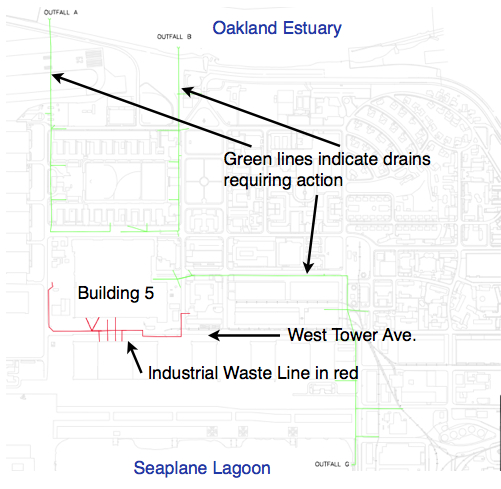 of thousands of feet of the most seriously contaminated lines leading to the Seaplane Lagoon. But questions remained for Restoration Advisory Board (RAB) members about drain lines leading north to the Oakland Estuary and also the Industrial Waste Line that was installed after passage of the Clean Water Act.