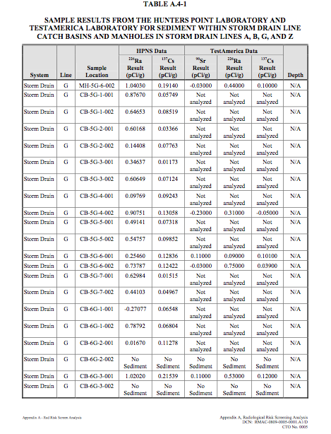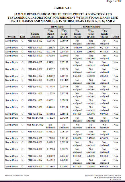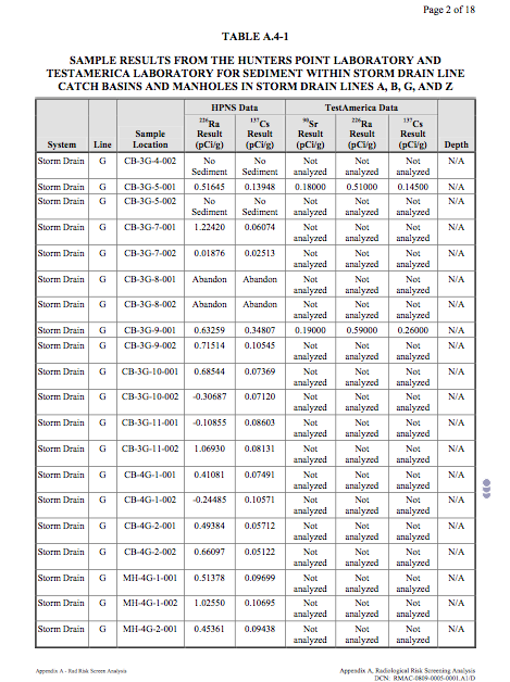 The main reason for concentrations in drain lines at Alameda Point is because of all the concrete pavement that sends high volumes of water runoff into drains. The levels of Cesium and Strontium concentrations in the investigative samples were within the range that could be expected from worldwide fallout of nuclear weapons testing.