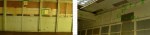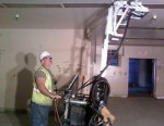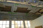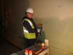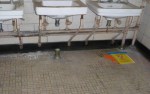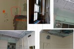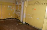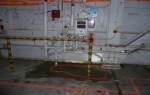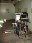 The photos that accompany the Navy’s scanning survey say more about the obsolete condition of the mezzanine area than they do about radium. Most of the contaminated areas are small patches, which are marked by spray paint and photo outlines. Class 1 surveys covered 100 percent of floors and walls up to six feet. Class 2 surveys covered 50% of areas above six feet. Floors and walls were scanned with a cart-mounted device designed to eliminate human variations in scanning distances. Hard to reach areas were scanned with handheld devices.