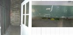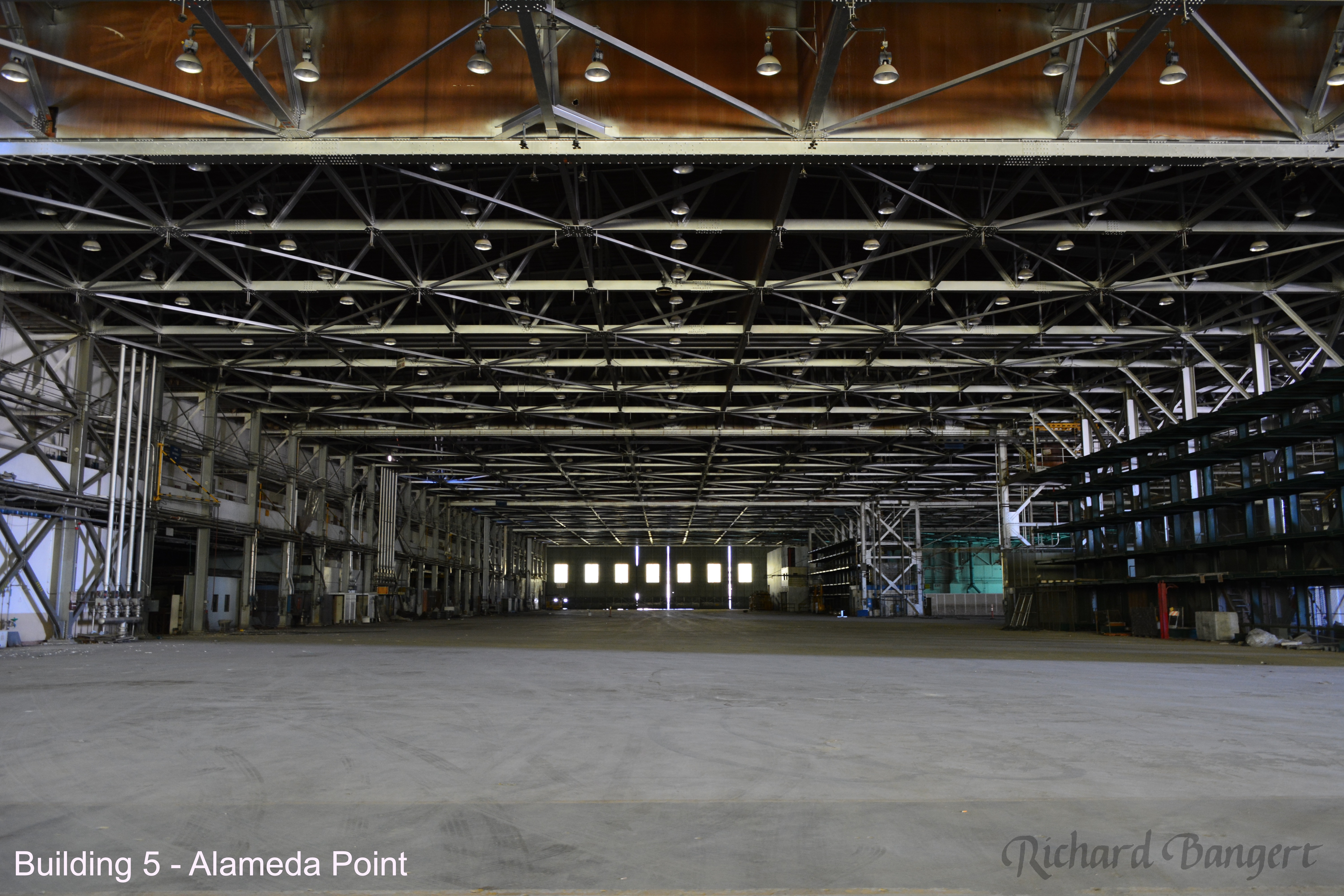 The mezzanine area is in the area also known as the Breezeway, which runs east to west between the two hangar areas of Building 5. Hopefully this lead paint contaminated architectural oddity will be torn down so that we can more readily attract businesses here and to the surrounding areas. It has an easily identifiable wooden wall on the western side, marking it as one of Alameda Point’s most prominent eyesores.