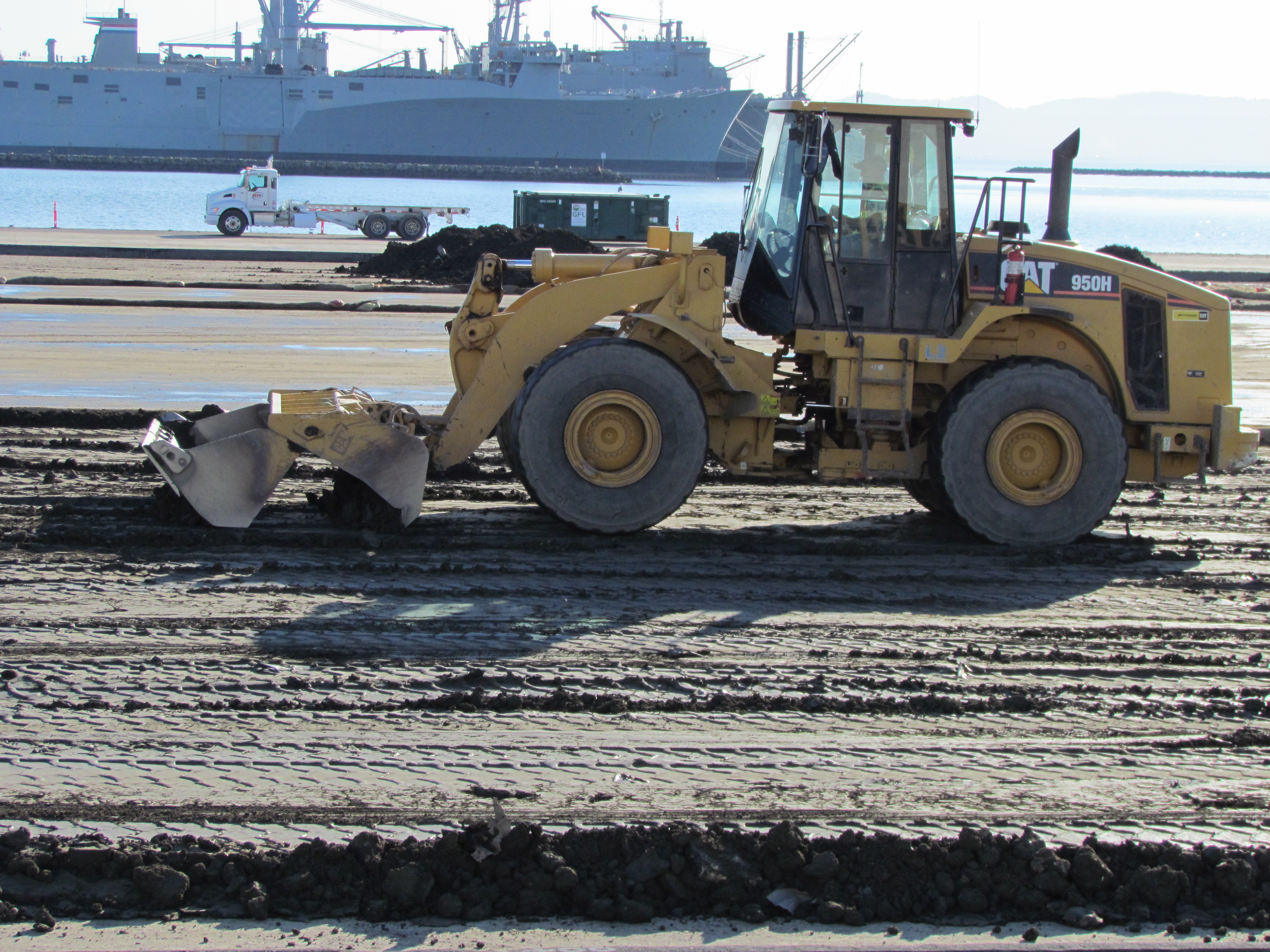 There are no final numbers on how many dumpster loads have gone to a radiological disposal facility. Most of the other soil, however, that was tested for heavy metals, PCBs, and pesticides is not even leaving Alameda Point —it now meets screening standards for clean soil, and it’s being hauled out to the runway area to eventually be reused to cover the old dump known as Site 2.