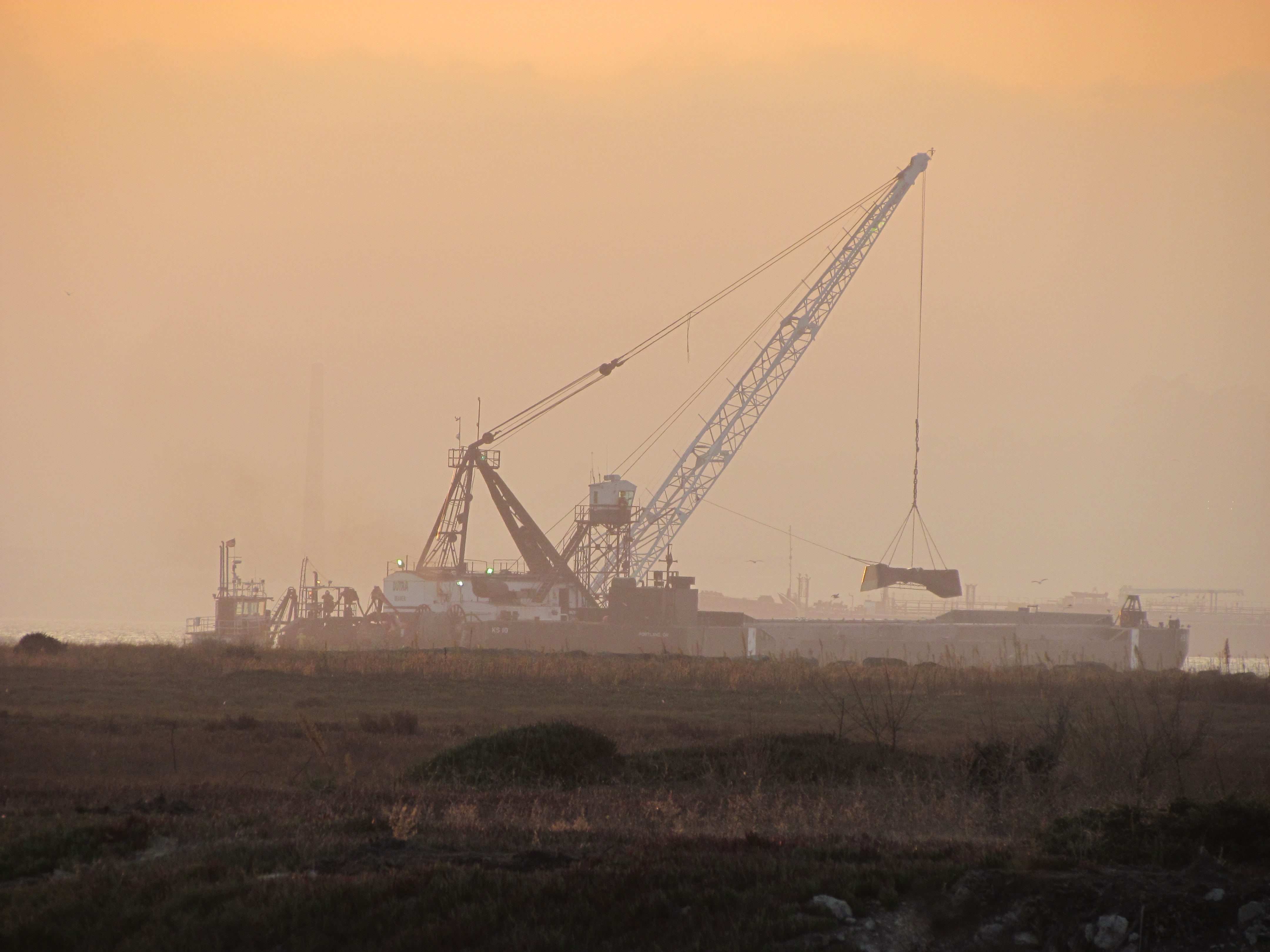 On Sunday, November 11, 2011, Dutra Dredging wrapped up five weeks of maintenance dredging in the channel leading to the Alameda Point docks. This channel is on the south side of Alameda Point where the maritime ships and USS Hornet are docked. Half of the dredge soil went to the in-bay disposal site at Alcatraz. The other half, unfortunately, was towed 50 miles out into the ocean—past the Farallon Islands—for disposal at a federally approved disposal site. A multi-agency effort to divert dredge material to beneficial reuse in the Bay and Delta proved ineffective in this case. Continue reading “SF Bay Estuary Plan Fails to Connect with Alameda Point”