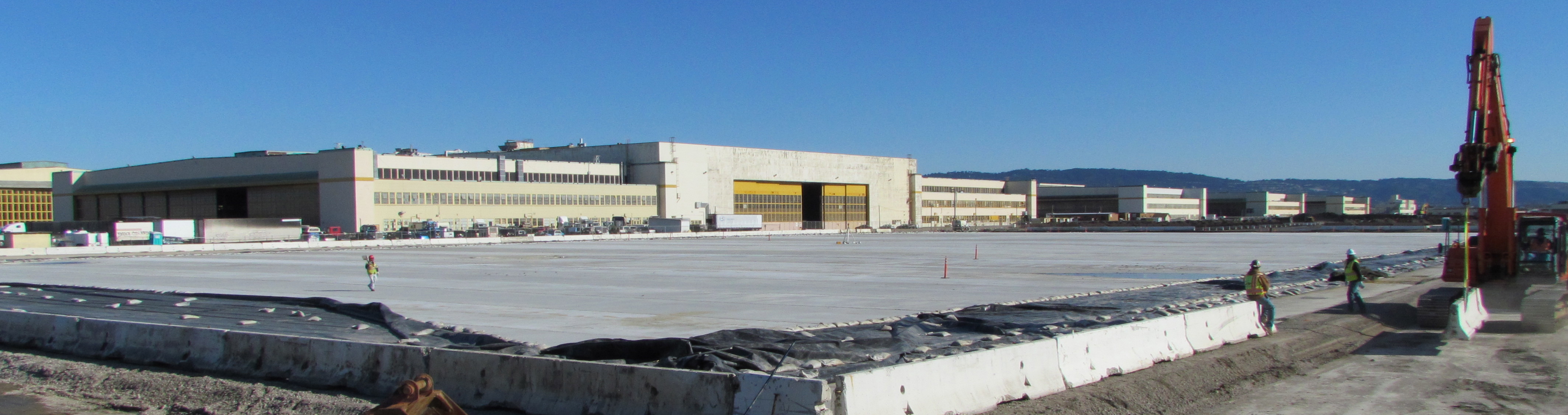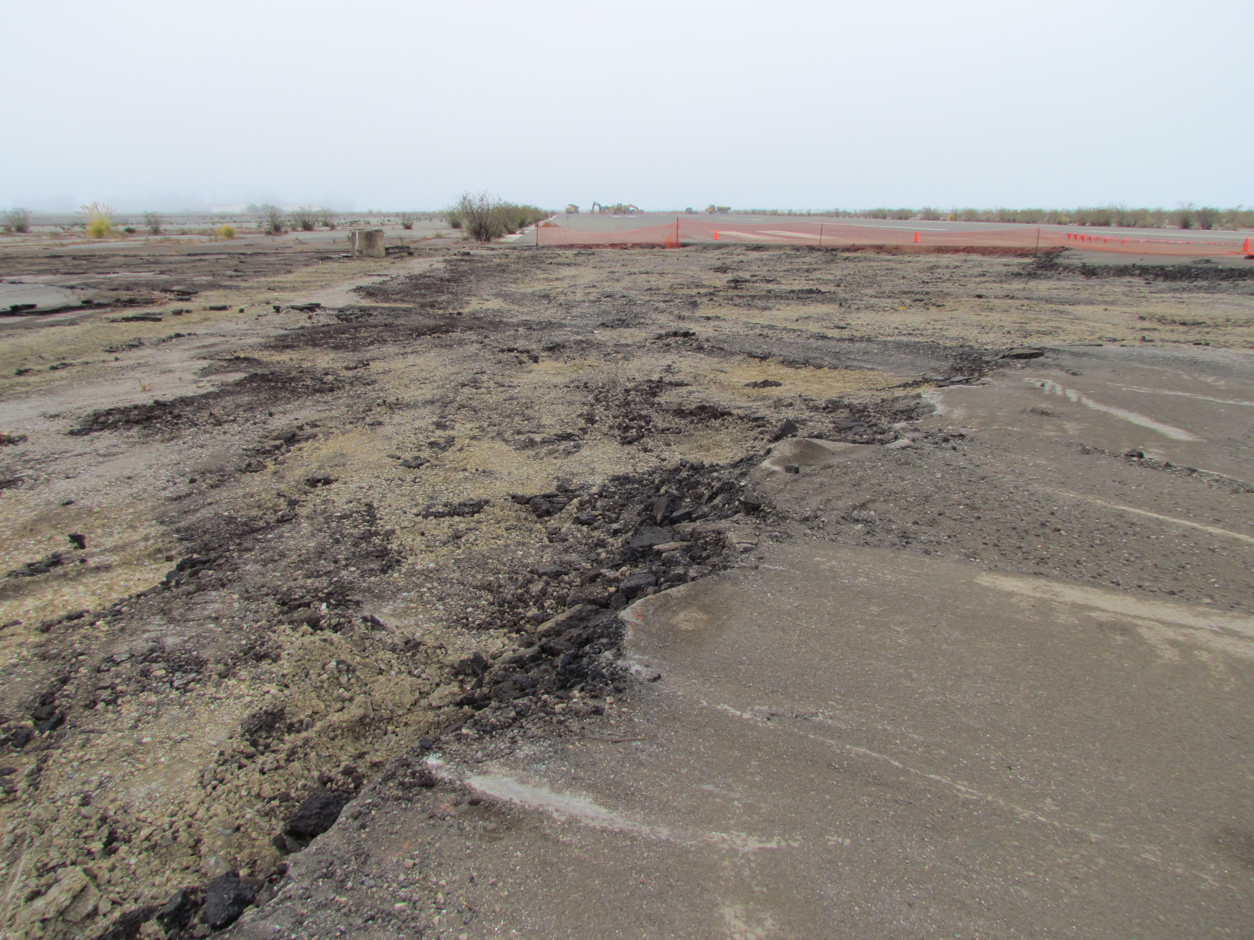 The 4.18-acre cleanup Site 34 in the old runway area next to the Oakland estuary looks barren from a distance. But up close there are concrete slabs and pavement, reminders of its bygone days as a bustling workshop area.