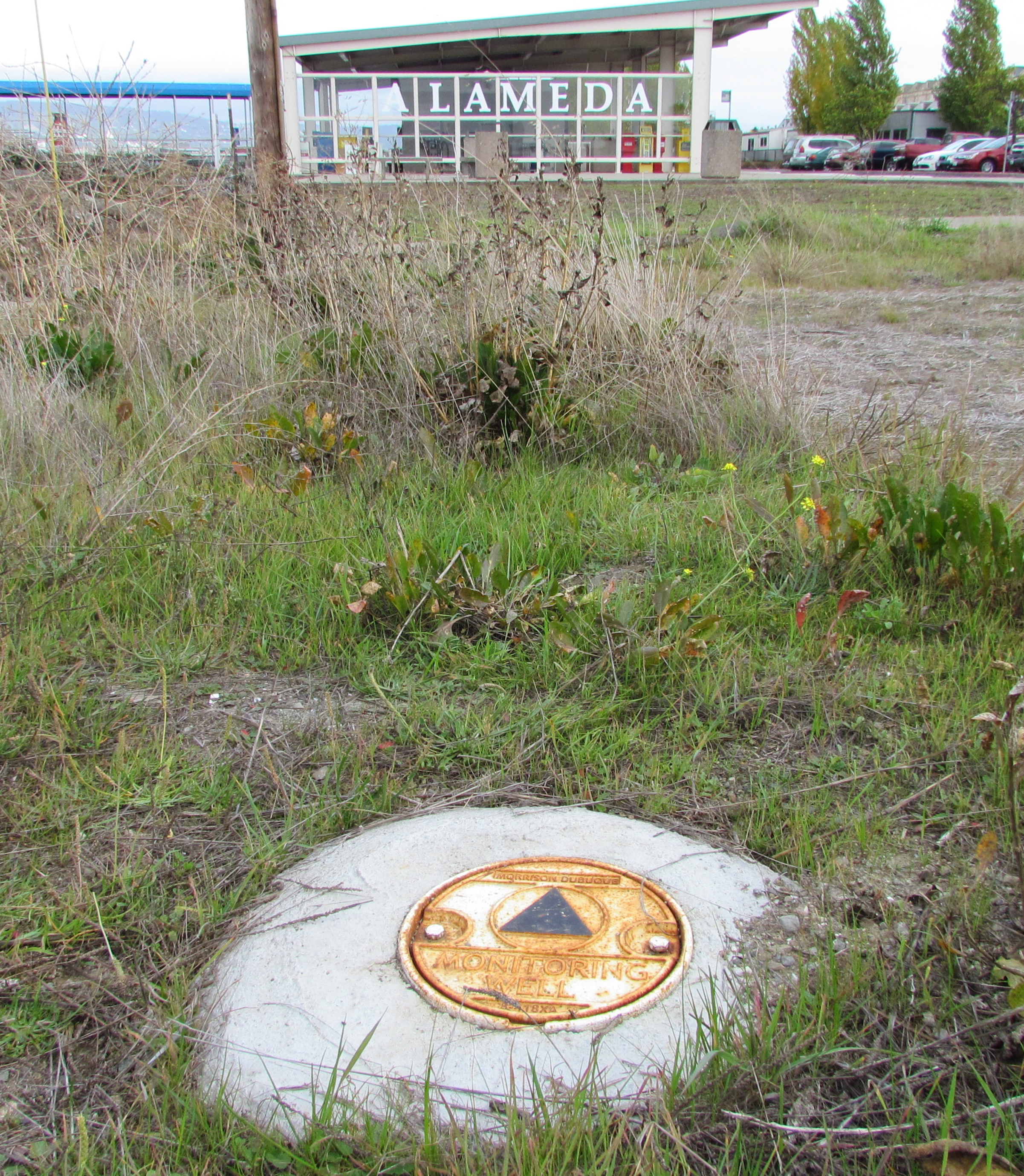 Todd Shipyard/Site 28 groundwater monitoring well. Alameda Main Street Ferry Terminal in background.