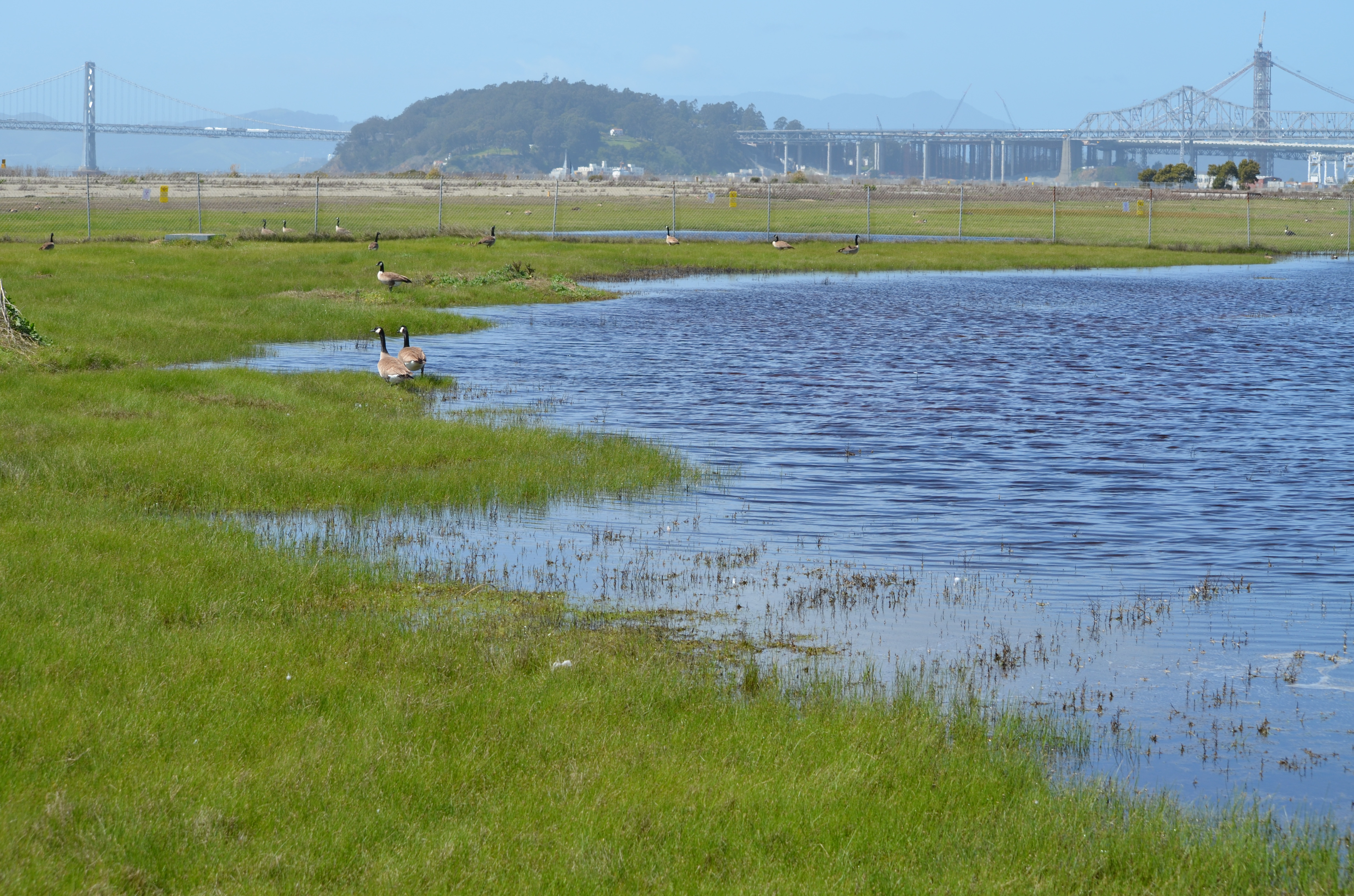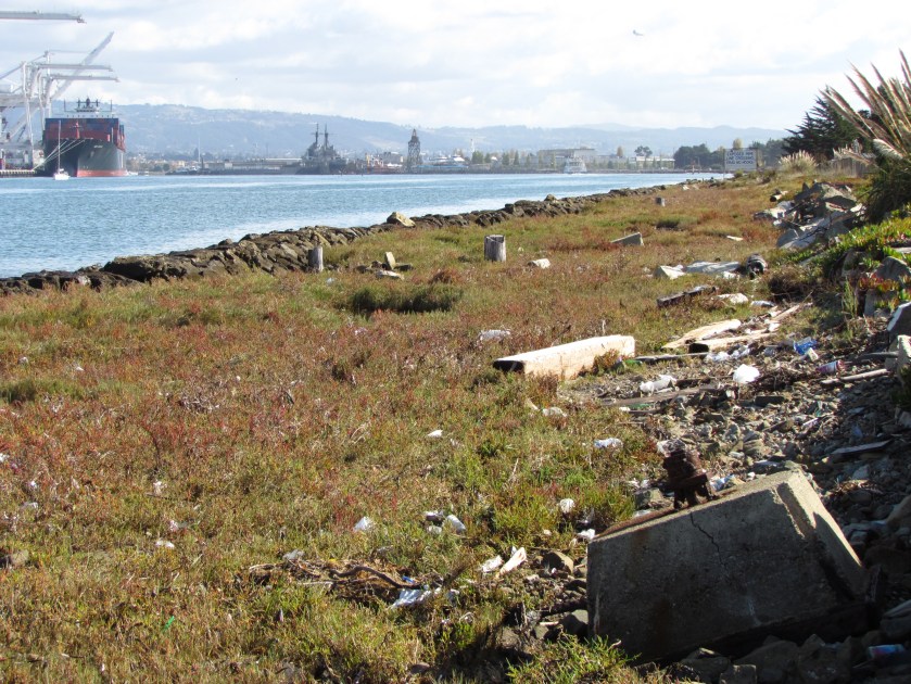 A strip of coastal marshland running along the Oakland Estuary on the north end of the site has no contamination. Its habitat quality, however, is marred by discarded concrete, wood, and trash. It will be up to the city to initiate wetlands restoration efforts there.