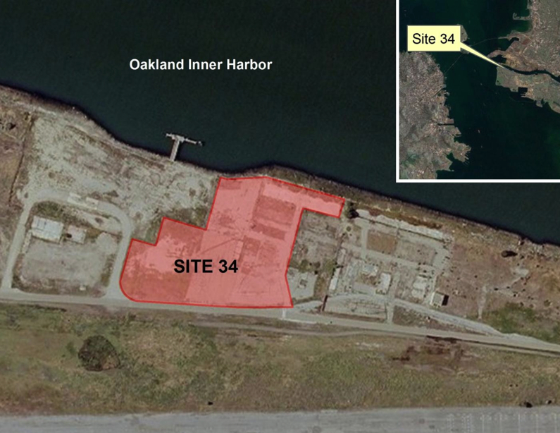 The northern edge of this site is part of the early westward land extension of Alameda, which allowed trains carrying freight and passengers to get out to a point where the water was deep enough for ferry connections. More fill was later added to the area. According to the Navy’s Remedial Investigation report, “In the 1920s, most of IR Site 34 was filled with estuary dredging material during construction of the Posey Tube.”
