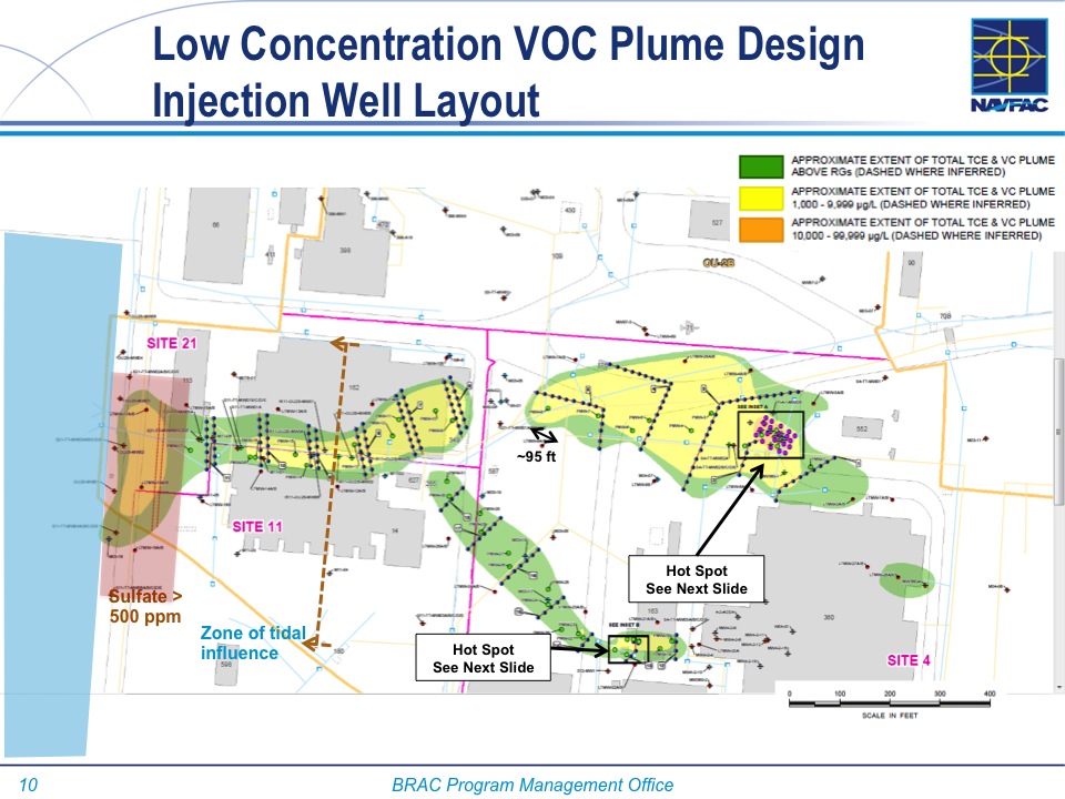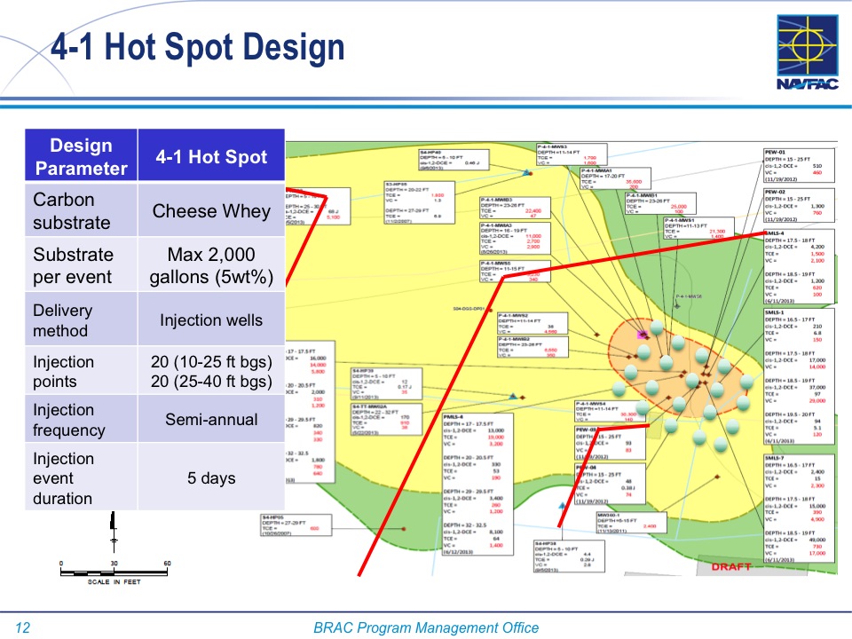 One of the high contamination “hot spots” that will get extra treatment to cleanup trichloroethene solvent in groundwater 30 to 40 feet deep.