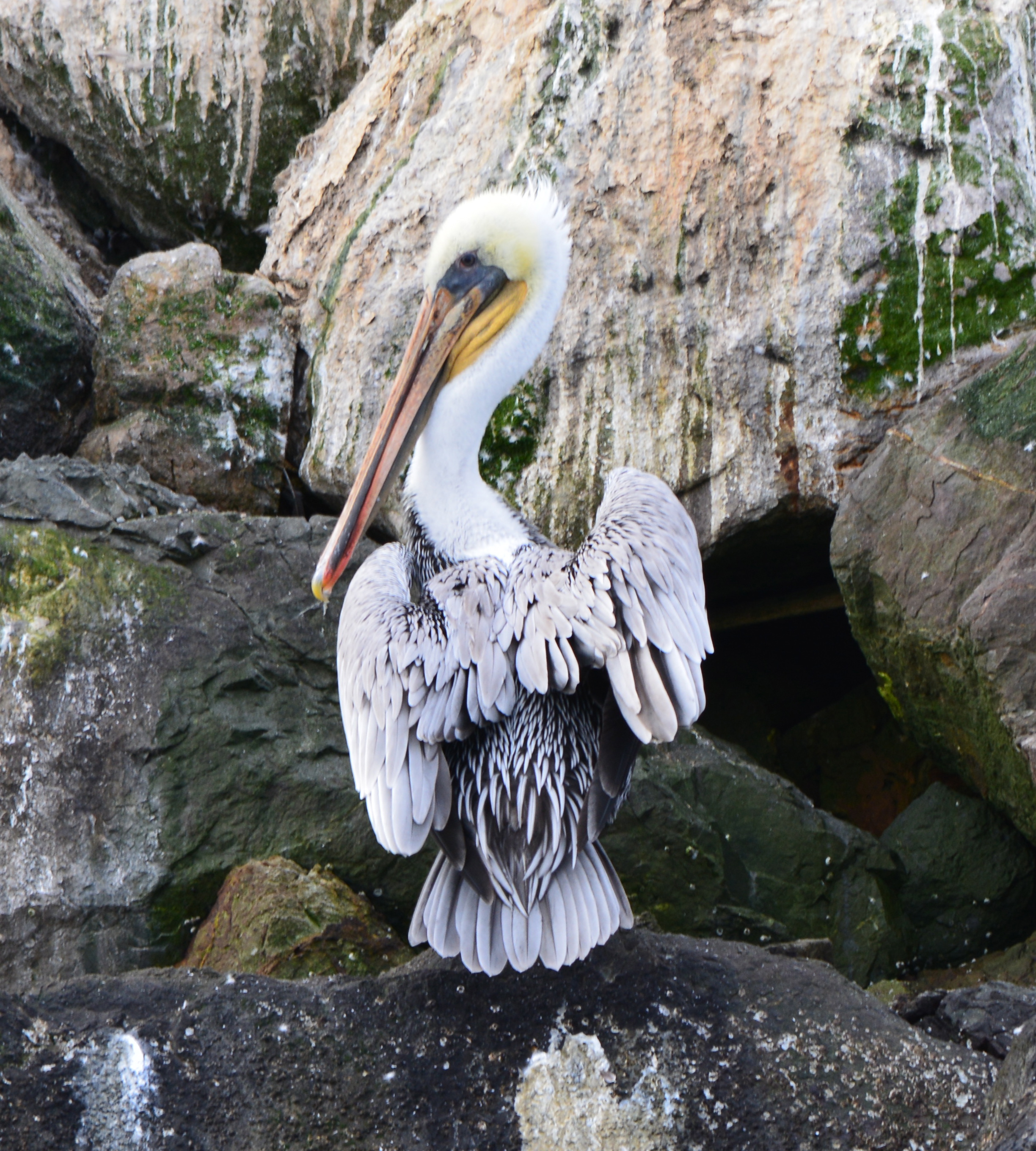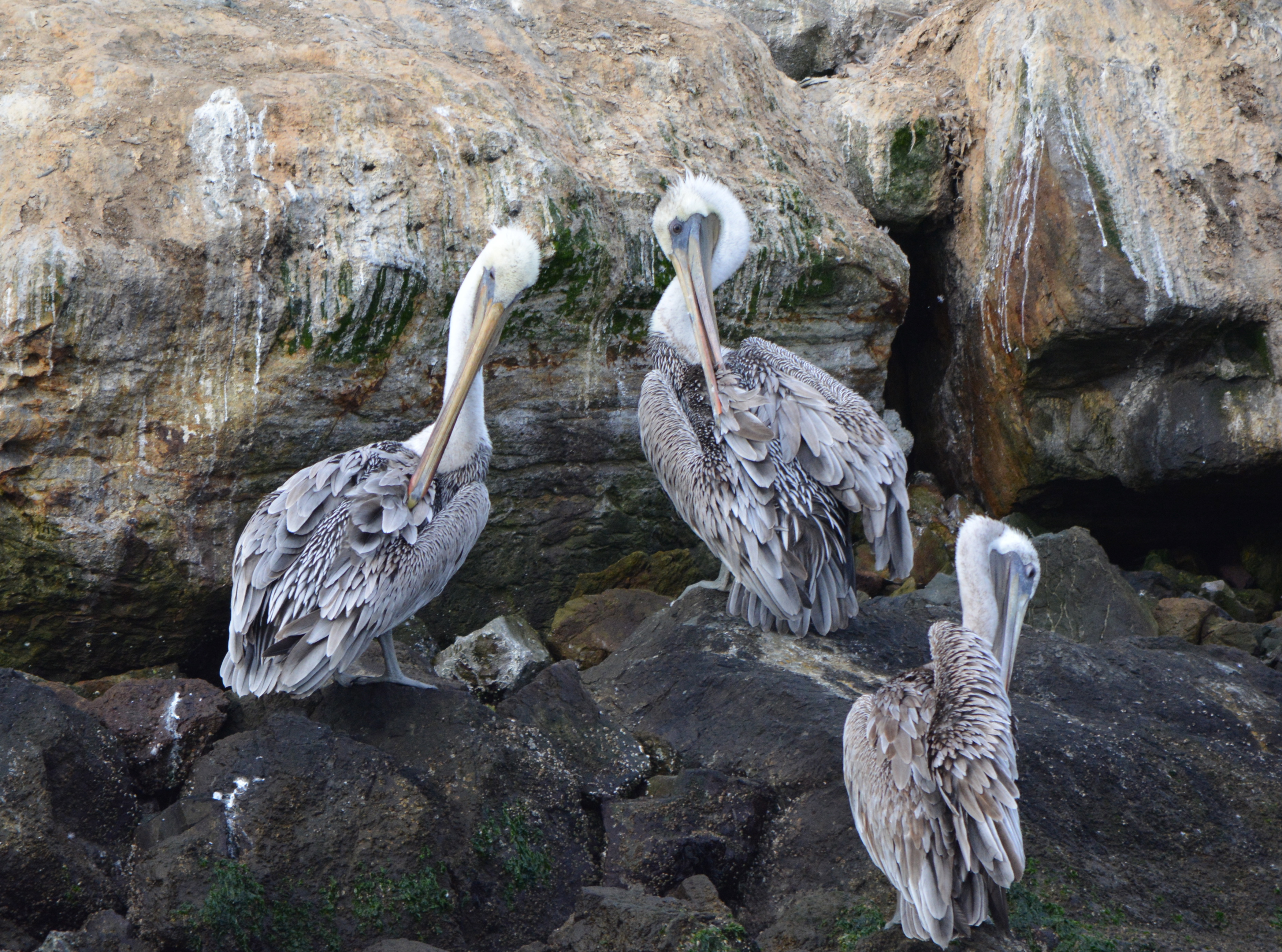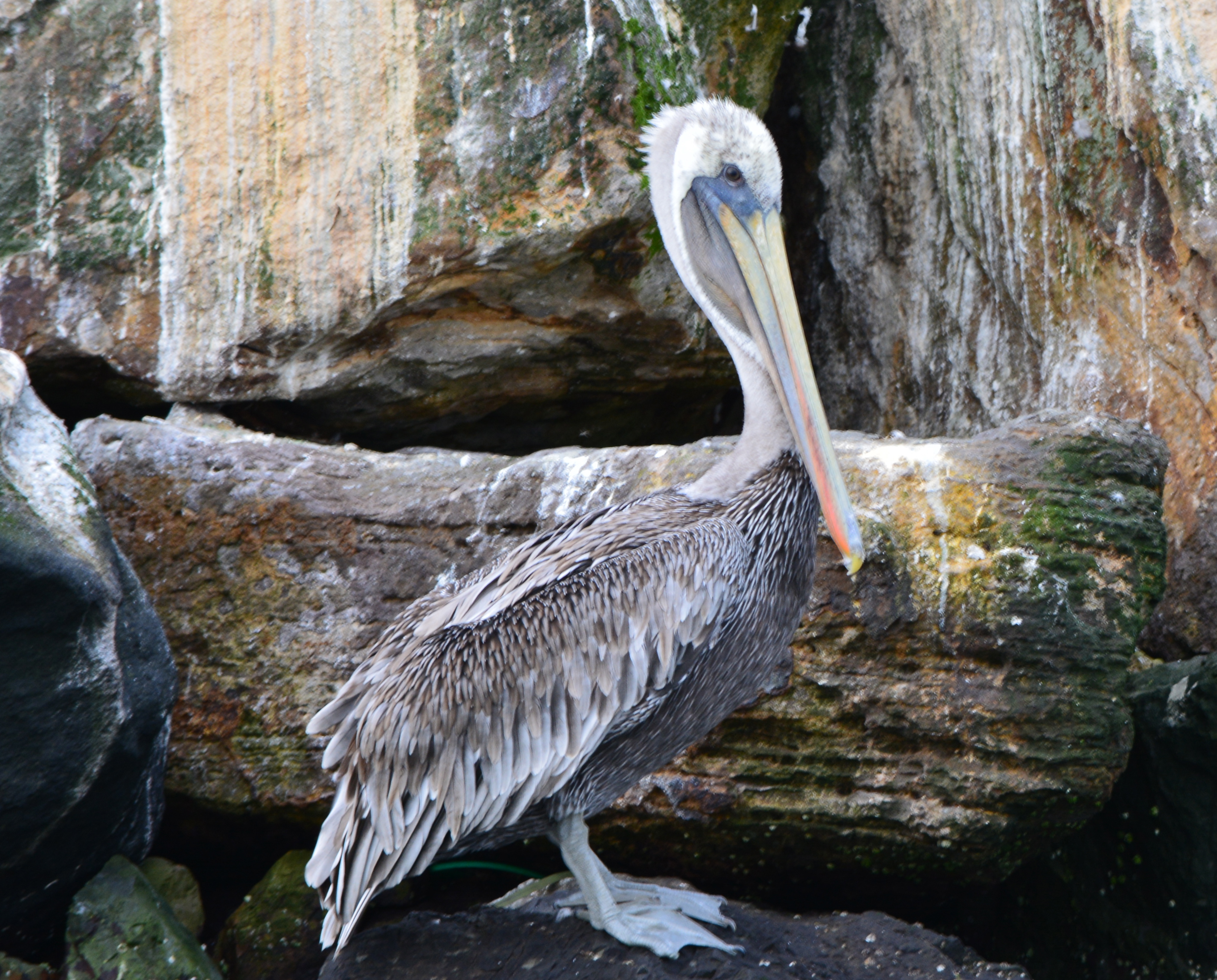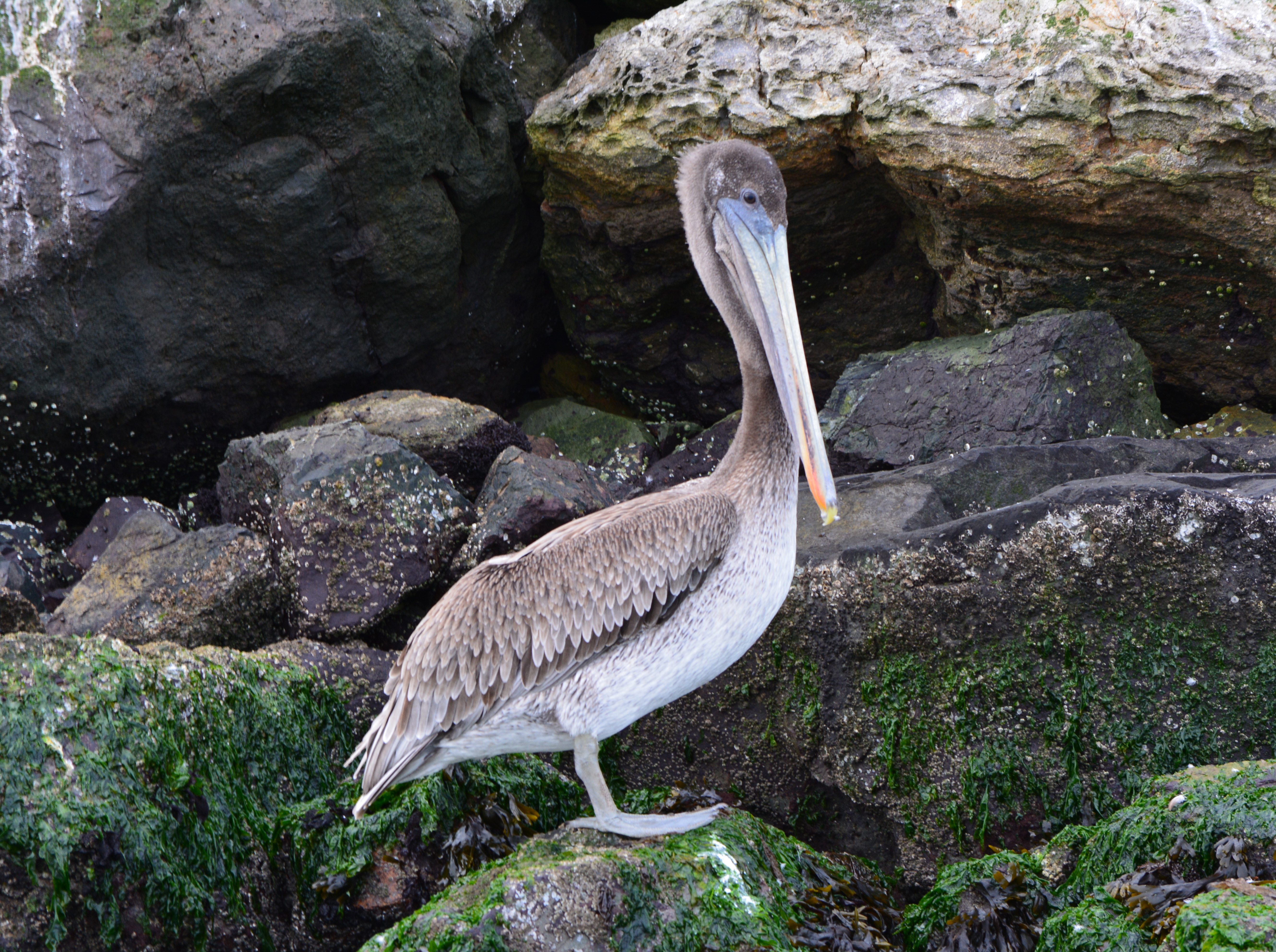 Every summer, thousands of California Brown Pelicans migrate north to the San Francisco Bay area from breeding sites on the Channel Islands and Mexico. As many as 8,000 have been counted on their favorite resting site in the Bay on the isolated breakwater barrier at Alameda Point, known as Breakwater Island or the outer rock wall.