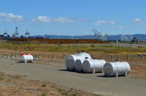 Tanks of chemicals for neutralizing solvent plume. Shown as work area being set up in June 2012.