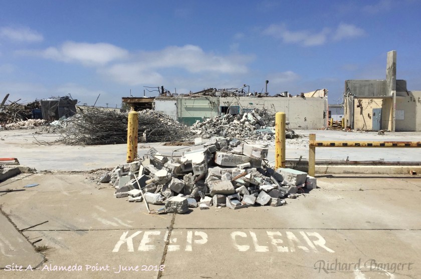 “Everything that can be recycled is being recycled,” said Joe Ernst, president of srmErnst, one of the Alameda Point Partners group busy at Site A. “In our bidding we pushed for everything to be separated and recycled, with the value of recycled material offsetting demo cost. All of the ground-up asphalt and concrete will remain onsite and be used under streets and any exterior concrete structures and surfaces.” Continue reading “Demolition Underway at Alameda Point”