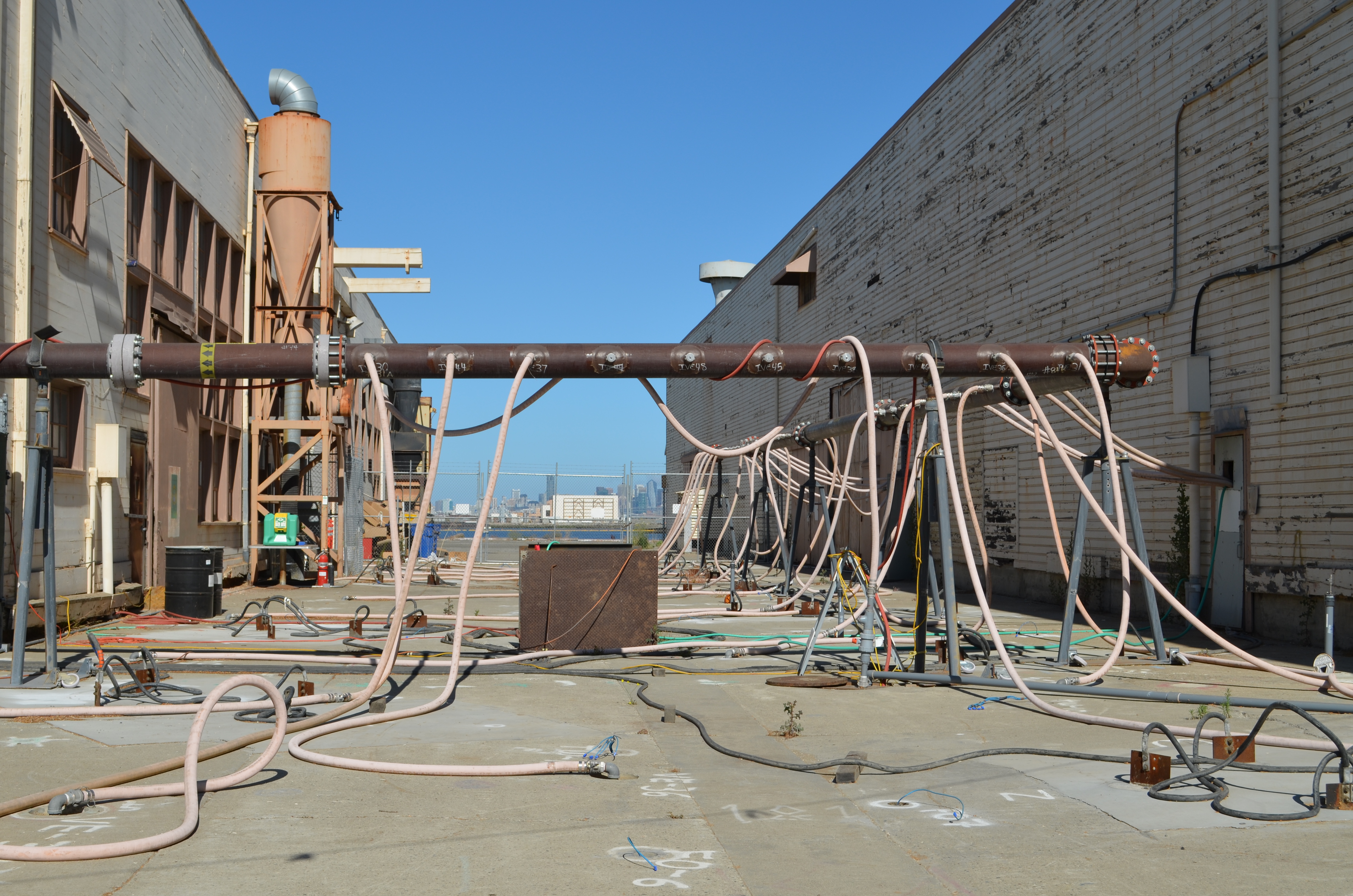 At the far end of Alameda Point on the northwest landfill, the Navy relied on chemicals, rather than heat, to do the cleanup on a small portion of the site. Dozens of hoses snaking around the site to the injection wells delivered an oxidizing mixture of neutralizing chemicals into a pocket of solvents. Without this remediation, the solvents had the potential to reach the Bay.