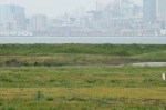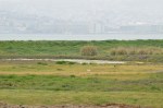 Partial view of wetland and soil cover on southwest corner of Alameda Point. Looking east with maritime ships in background.