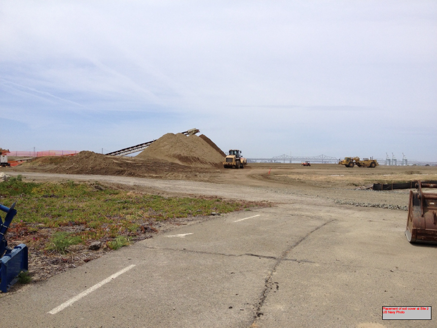 2013 will end with commencement of a similar soil covering operation on the nearby landfill on the northwest corner of Alameda Point called Site 1. Both landfill areas will be safe for open space recreational activities when completed, but will be limited to hiking trails rather than mowed playing fields in order to maintain soil-stabilizing vegetation.
