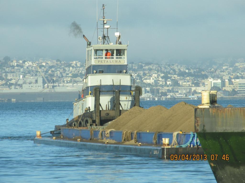 More than 600,000 cubic yards of soil is required to complete the project. Of that amount, 110,000 cubic yards have been recycled from the Seaplane Lagoon dredging after it tested clean. The rest is being barged in from Decker Island in the Sacramento River near the town of Rio Vista.